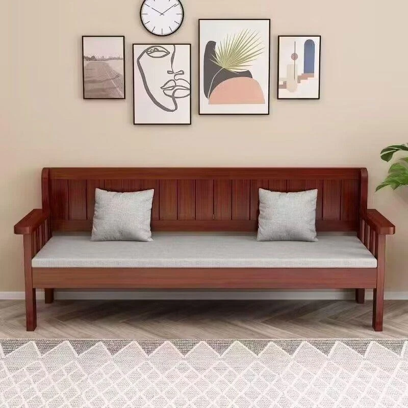 モダンミニマリストの無垢材ソファ|小型リビングや寝室に最適な3人掛け背もたれ付きロングベンチ|新しい中華スタイルのバルコニーソファチェアで、スタイリッシュな空間を演出!