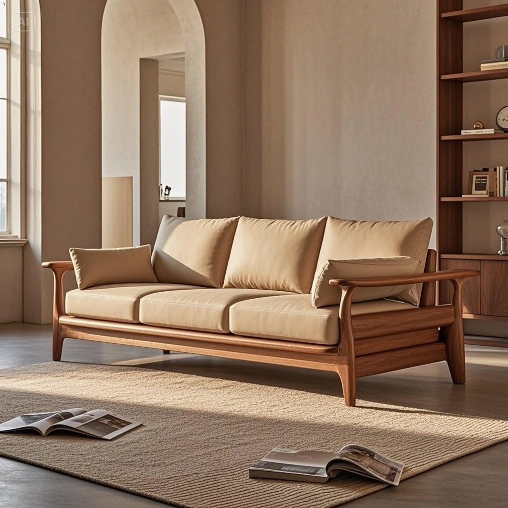 新中式スタイルの北米産ブラックウォールナット材使用!2025年新作の軽奢感あふれる高級感三人掛けソファ。リビングルームにぴったりの洗練されたデザインで、居心地の良さを追求!