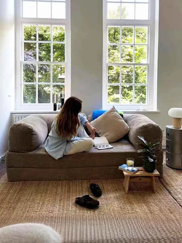 毛虫スタイルのリラックスソファ!寝転んでも寝てもOK!寝室やバルコニーにぴったりの畳スタイル。インスタ映えする一人掛けソファ、快適なひとときをあなたに!