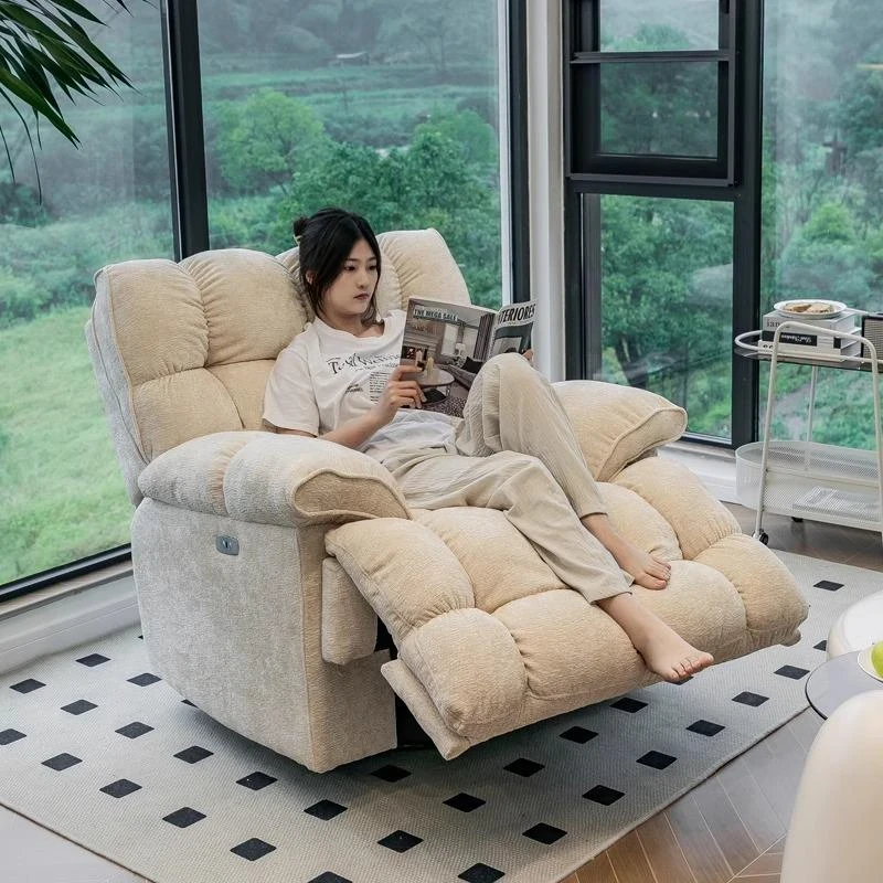 エグゼクティブスペースソファキャビン 一人用リクライニングチェア 本革電動マルチファンクション リビングルーム用の怠け者マッサージネイルケア テクノロジー布装備 最高のリラクゼーション体験をあなたに!