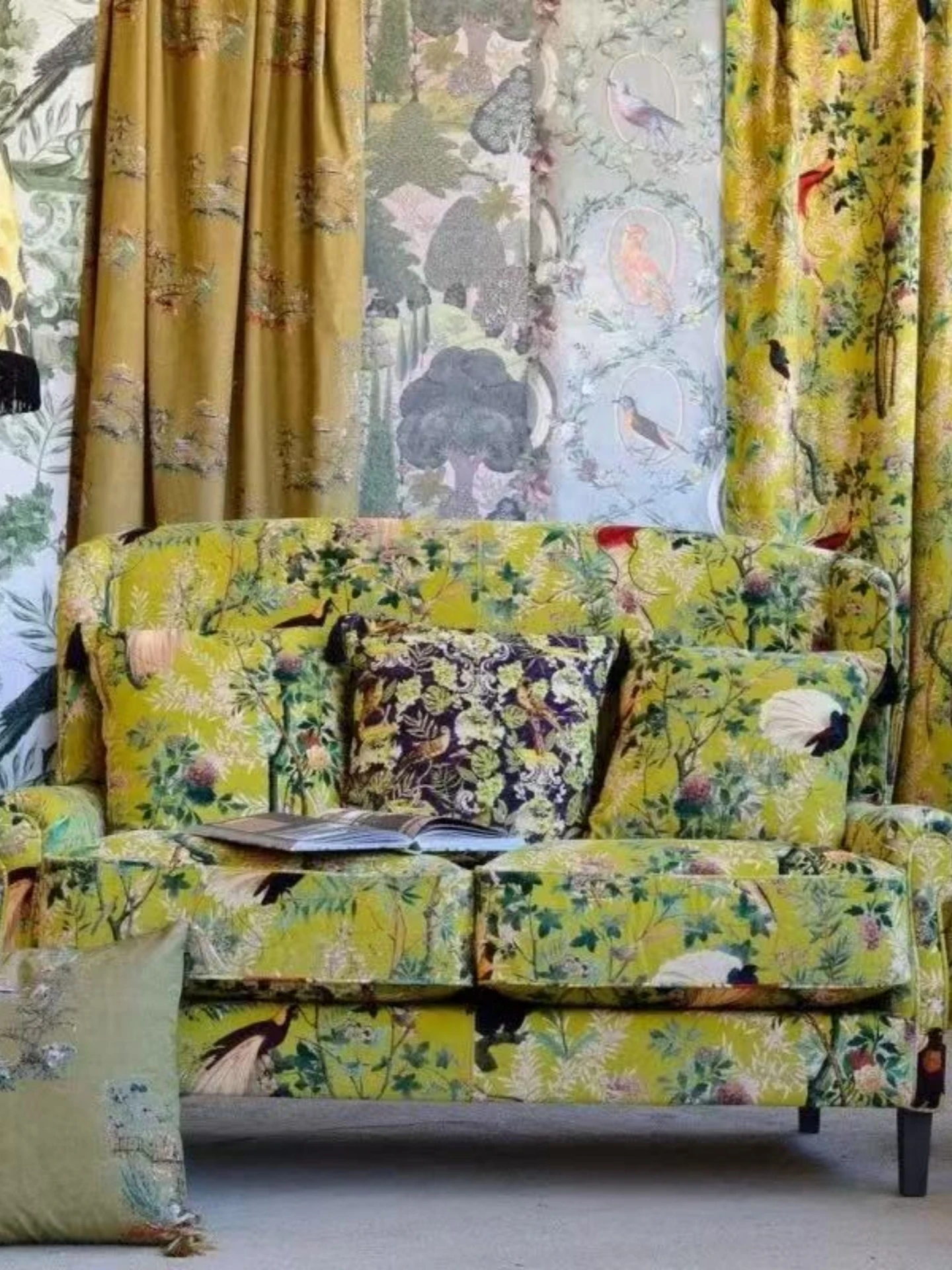 フランス風レトロデザインのバレー山谷ソファ - デザイナー直営!小型住宅に最適な中古リビング用、柔らかなシェニールファブリック使用。おしゃれで快適な空間を実現!