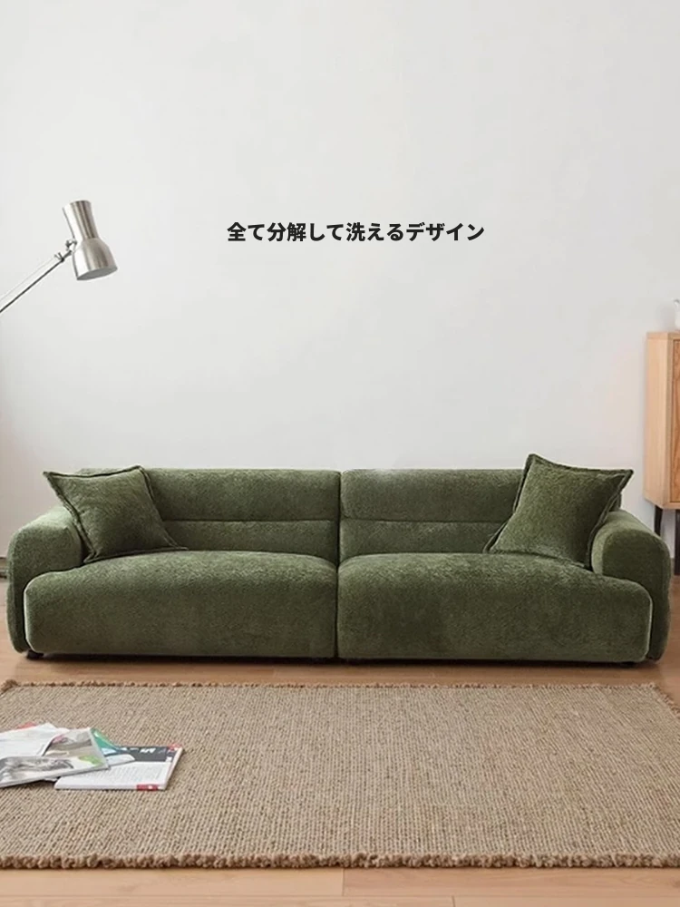 フレンチヴィンテージ風ファブリックソファ - 和の美を感じる侘寂デザイン、小型住宅や民宿、ホテルに最適なラムウール直排ソファ。居心地の良い空間を演出し、心を癒すひとときを提供します!