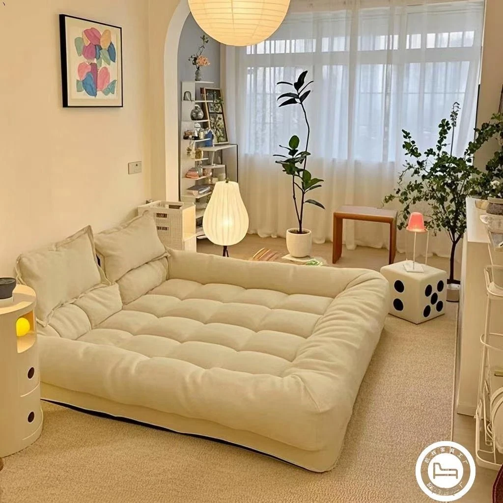 忞作イタリアンミニマリスト豆腐ブロックソファ - わびさび風デザイン、全分解洗浄可能、怠け者に最適なリビング用小型フレンチファブリックソファ。快適さとスタイルを両立した、あなたの小さなお部屋にぴったり!