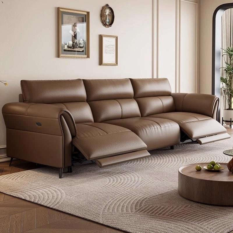 2025年新作!スタイリッシュな壁なし電動機能付き本革ソファ - ラグジュアリーな一等牛革使用、モダンでシンプルなデザインが魅力のリビングソファ!あなたの部屋を一層引き立てます。