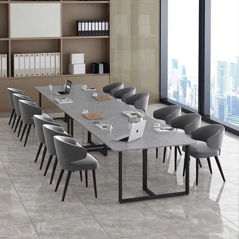 モダンでシンプルなデザインの高級感あふれる大理石会議テーブル - 大型長テーブル、ビジネスミーティングや接客に最適!快適な椅子と組み合わせて、洗練されたオフィス空間を演出します。