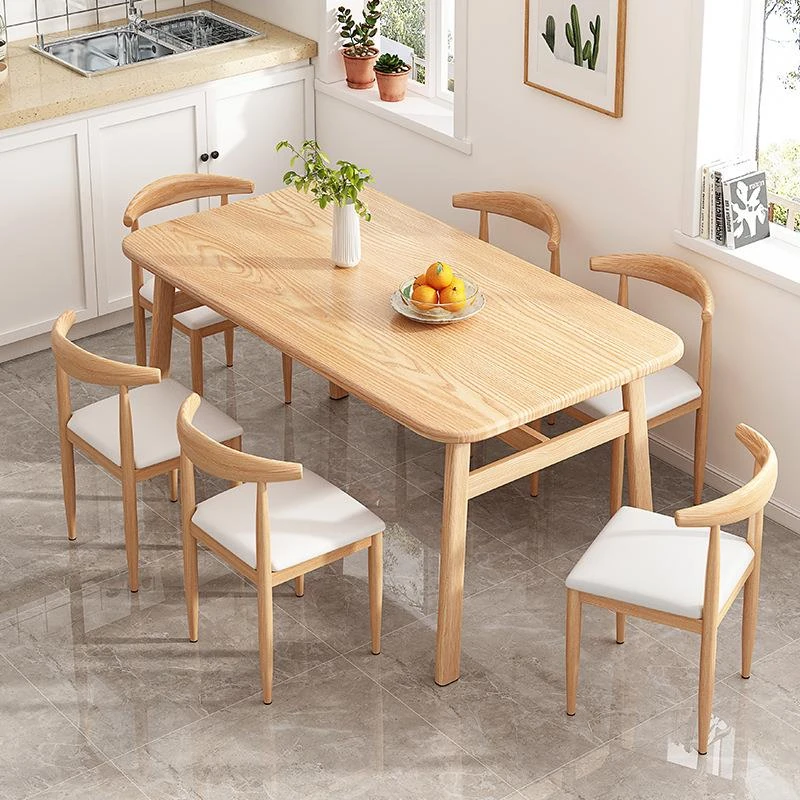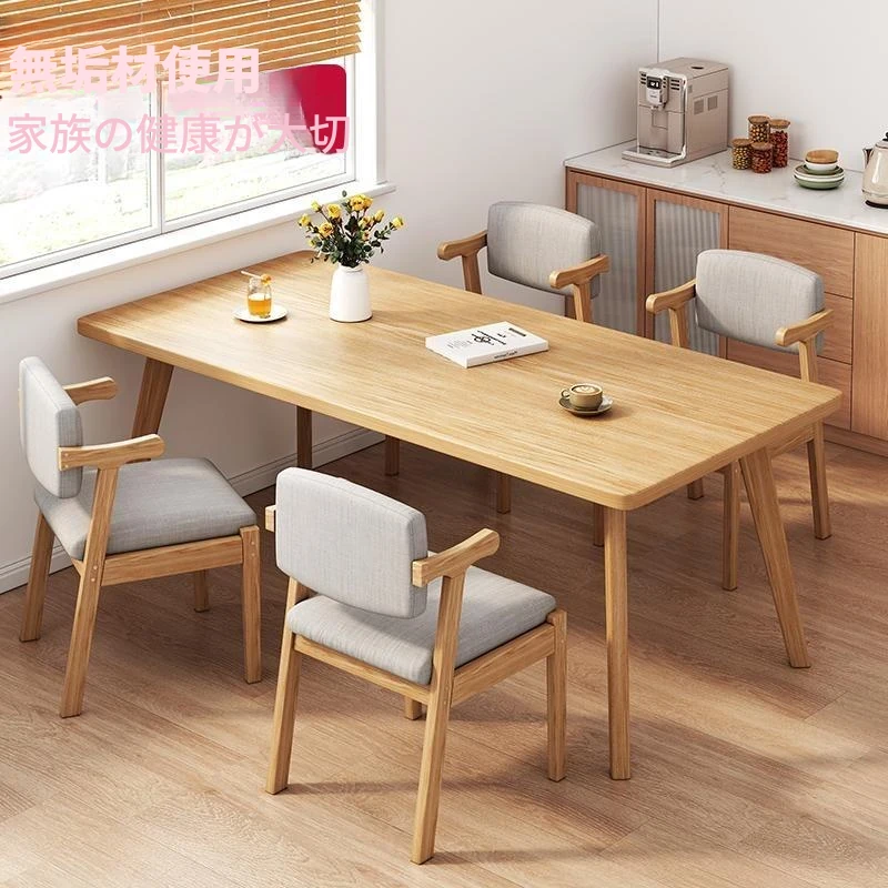 北欧スタイルのシンプルでエレガントなダイニングテーブルセット|小型住宅に最適な長方形テーブルとチェアのコンビネーション|本物の木材のような美しいデザインで、食事をより特別な時間に演出します!