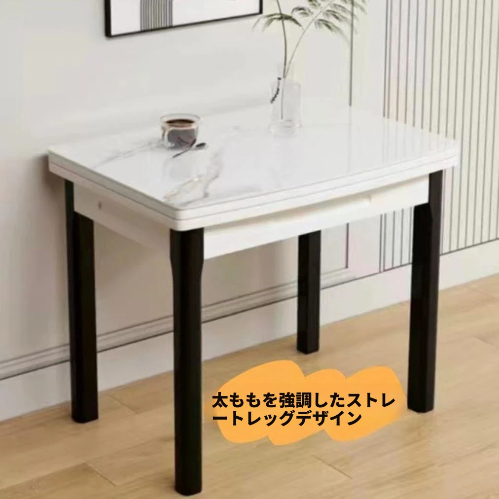 折りたたみ式の岩板ダイニングテーブル|小型住宅に最適な実木製|現代的でシンプルなデザイン|伸縮可能で省スペース|贅沢な食卓をあなたに。
