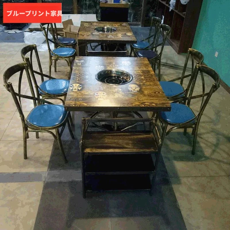 テーマ火鍋テーブル電磁炉焼肉一体型串串香レストラン用長方形ダイニングテーブルセット - 業務用に最適!美味しい火鍋と焼肉を楽しむためのスタイリッシュなデザインで、ダイニング体験を一新しましょう。