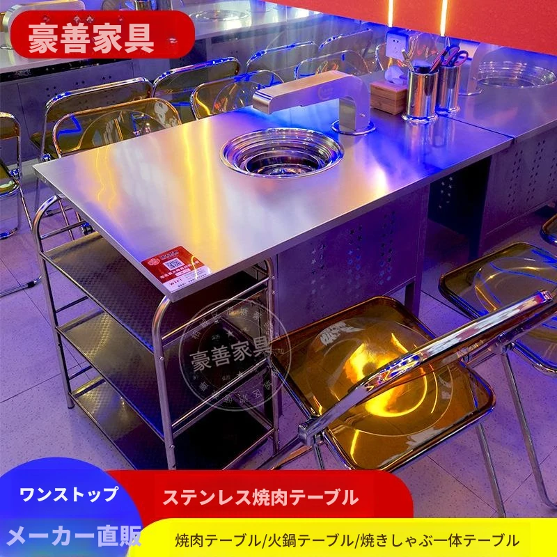 煙の出ないステンレス製ホットポットテーブル!韓国風オイルバレルデザイン、インダストリアルスタイルの焼肉テーブル。日本式バーベキューレストランに最適な商用テーブル&椅子セット!