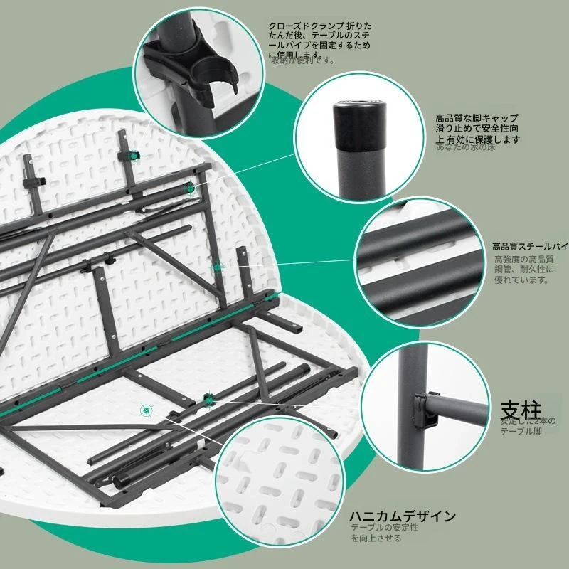折りたたみ式円形ダイニングテーブル - 家庭用大サイズ、10人用の円卓で、小さなスペースにも最適!シンプルでスタイリッシュ、食事を楽しくするデザインです。