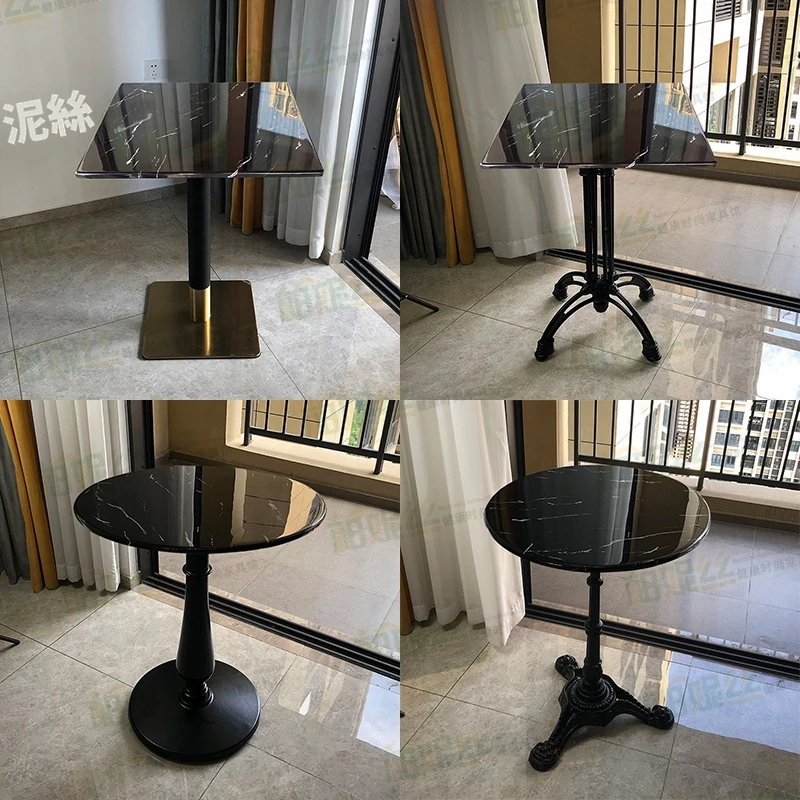 人気のスイーツ・タピオカミルクティー店にぴったり!おしゃれな人工石製の四角テーブル、バルコニーやカフェに最適な円形テーブル。軽食や飲み物を楽しむための理想的なテーブル・チェアセットです。