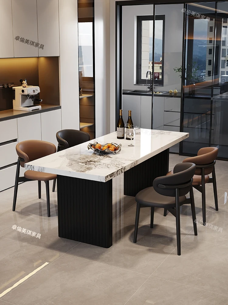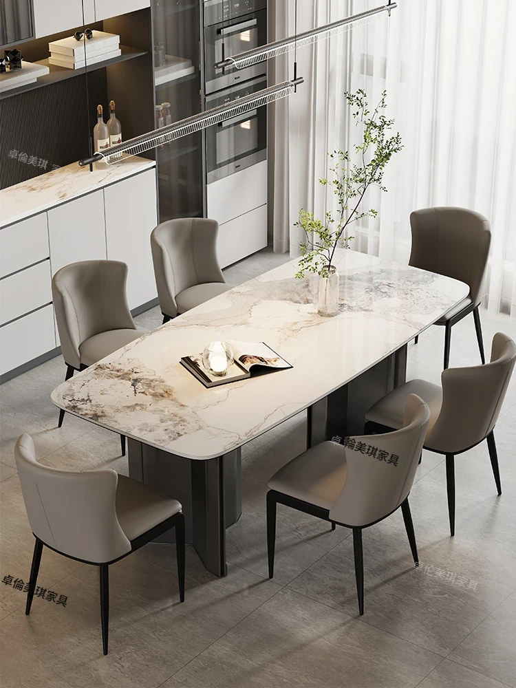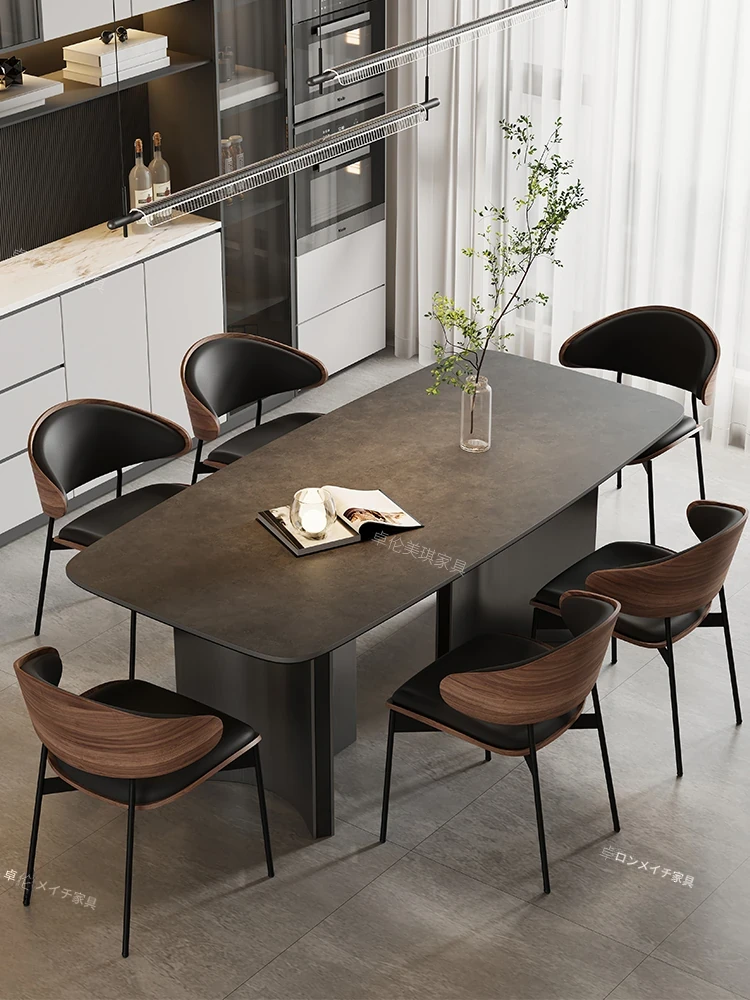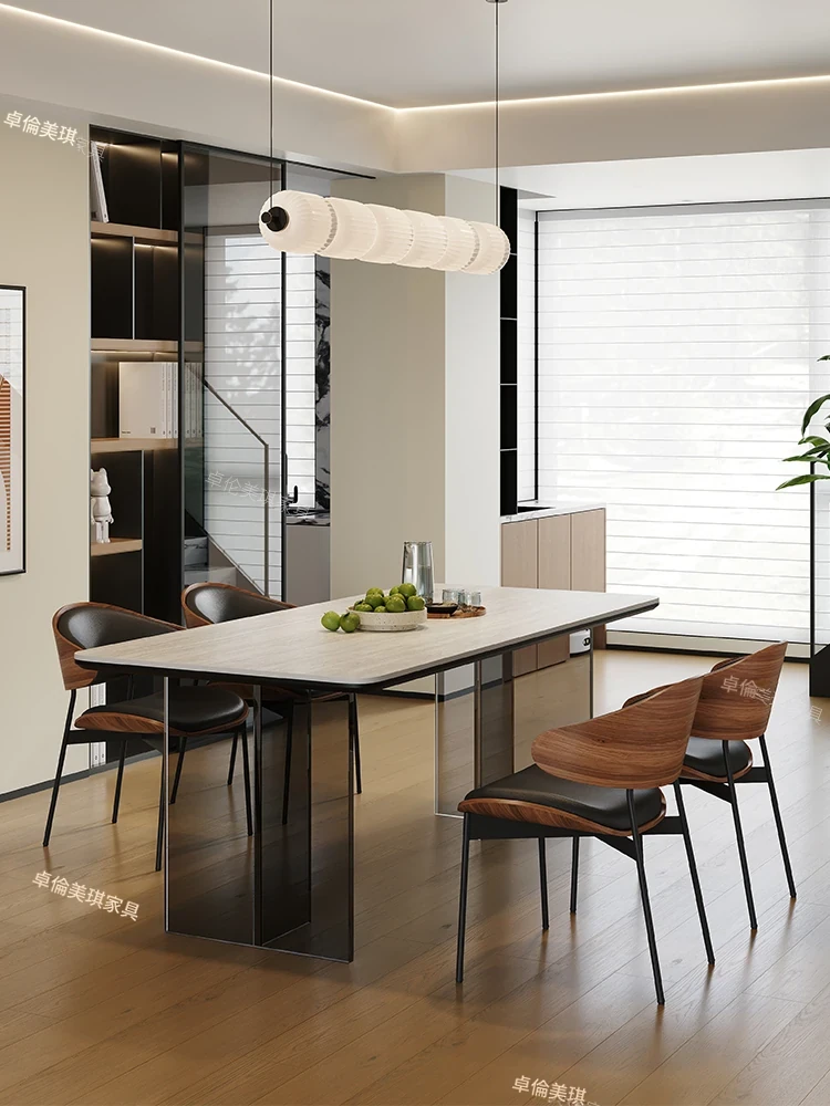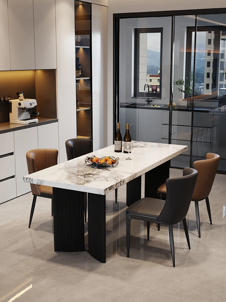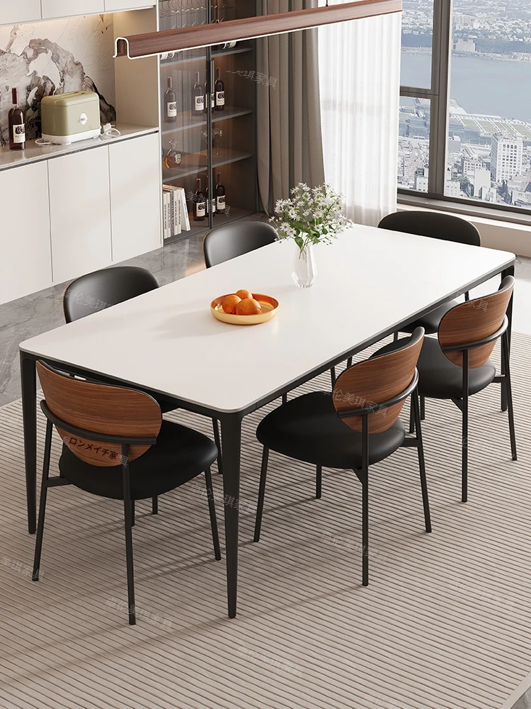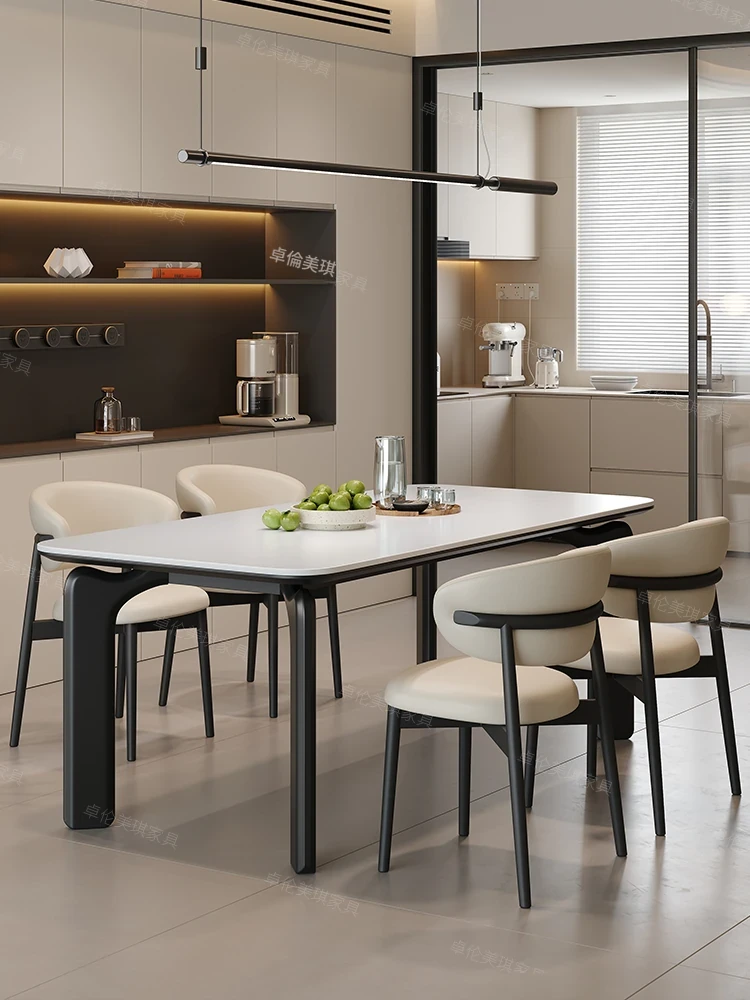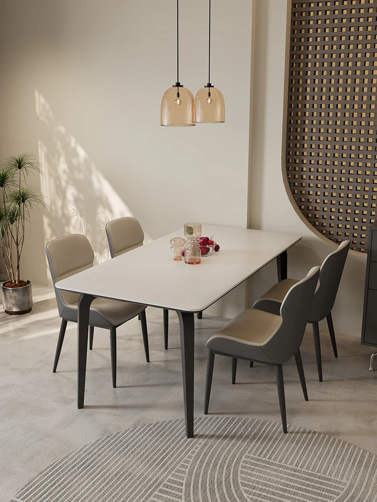 イタリアンミニマリストデザインの岩板ダイニングテーブル - 小型住宅に最適!モダンでシンプル、軽やかなラグジュアリー。長方形のテーブルと椅子のセット、インスタ映えする人気アイテム!