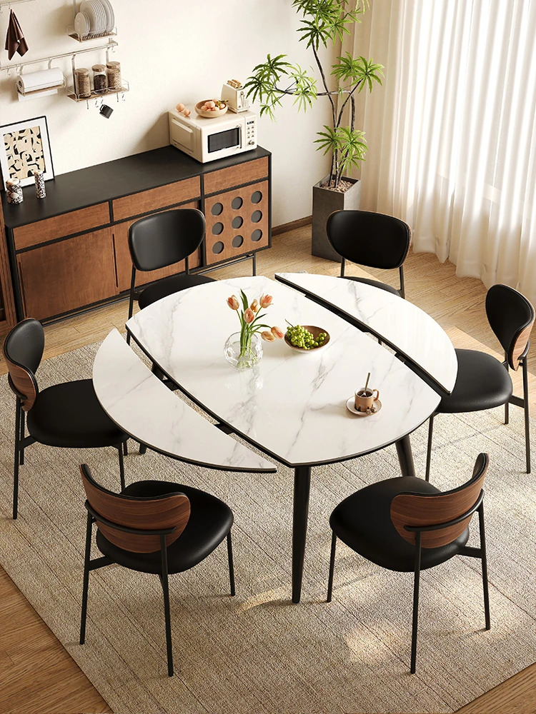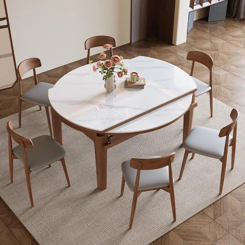 多機能折りたたみ式岩板ダイニングテーブル|実木製・円形・サイズ調整可能|狭い空間にも最適なモダンシンプルデザインの食卓