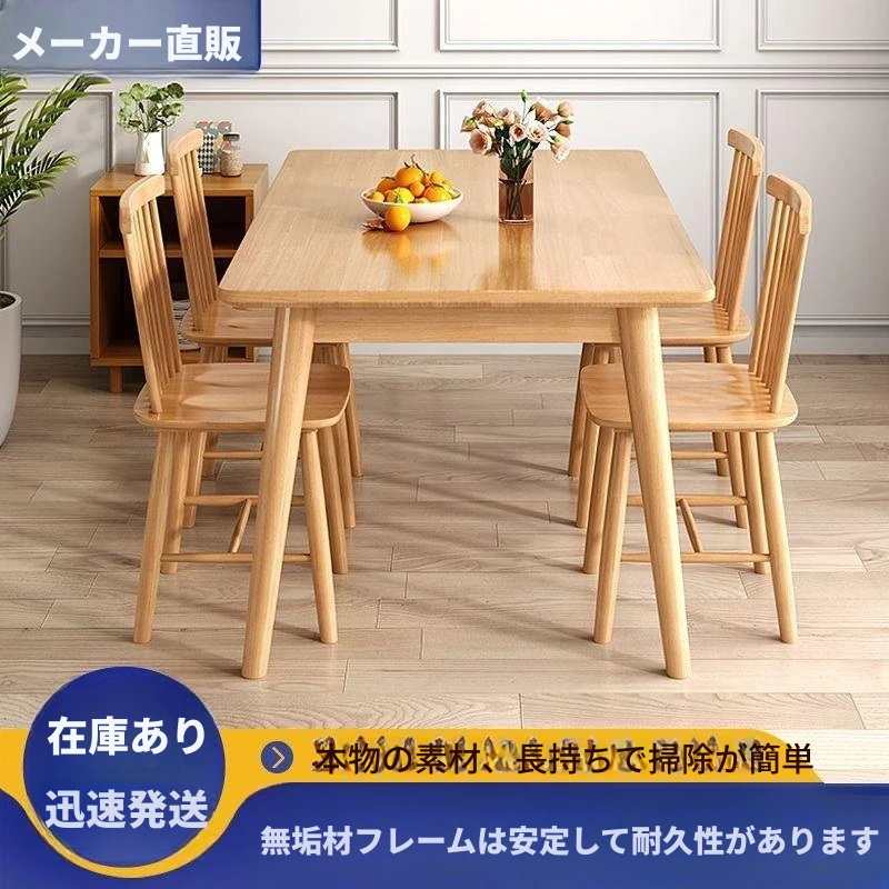 北欧スタイルの無垢材ダイニングテーブルセット|シンプルで洗練されたデザイン|省スペースにも最適な長方形テーブル|家庭での食事をもっと特別にするアイテムです!