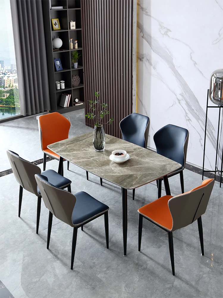 シンプルなイタリアンデザインのロックボード製ダイニングテーブルセット - 小型住宅に最適な多機能長方形テーブルと椅子のコンビネーション。洗練されたスタイルでおしゃれな食事空間を演出します!