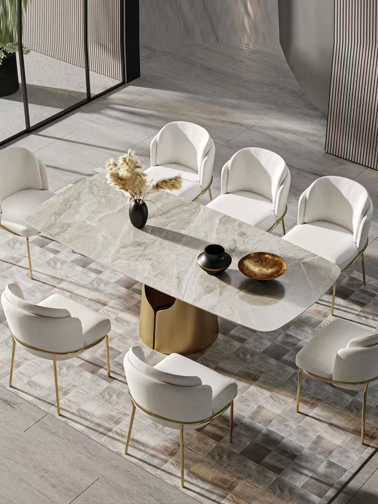 高級イタリアンミニマリスト岩板ダイニングテーブル&チェアセット - 小さなリビングに最適な北欧スタイルのラグジュアリーな天然木製テーブル。洗練されたデザインで、あなたの食卓を特別な空間に変えます!