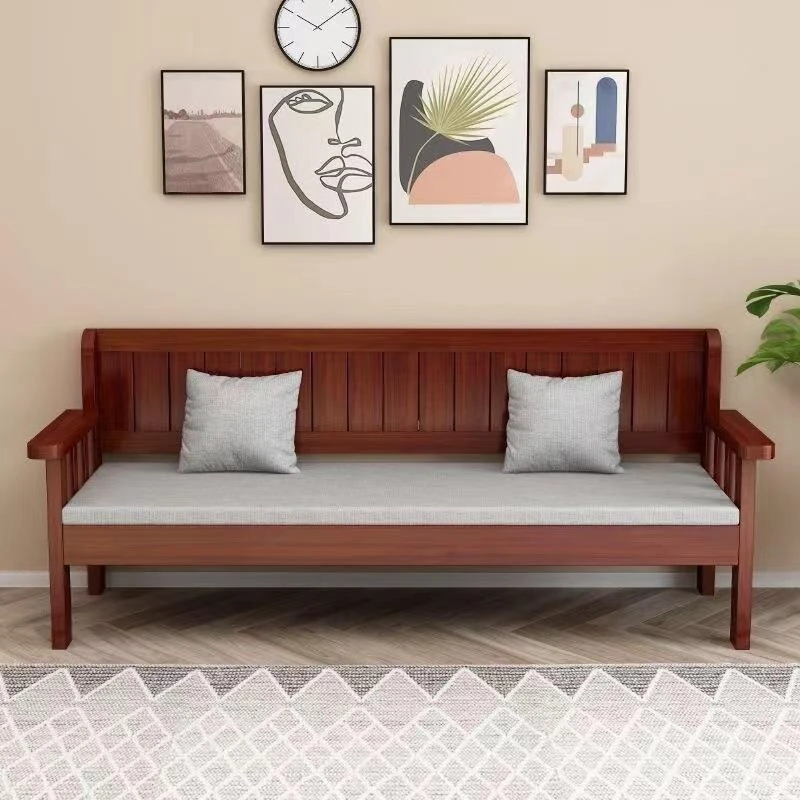 Modern Minimalist Solid Wood Sofa for Small Spaces - Three-Seat Bench with Backrest, Perfect for Living Room, Bedroom, or Balcony, New Chinese Style Design