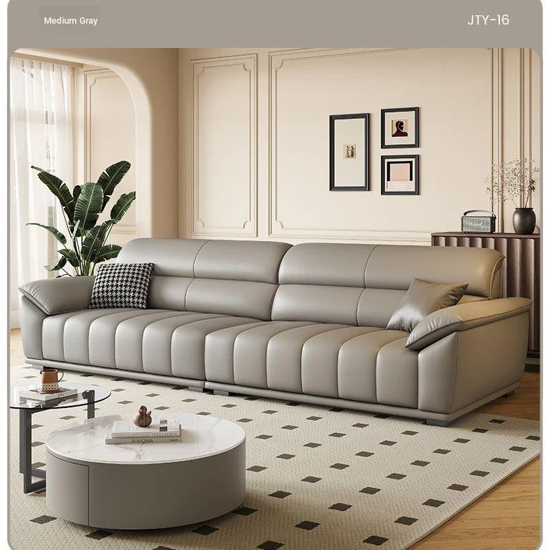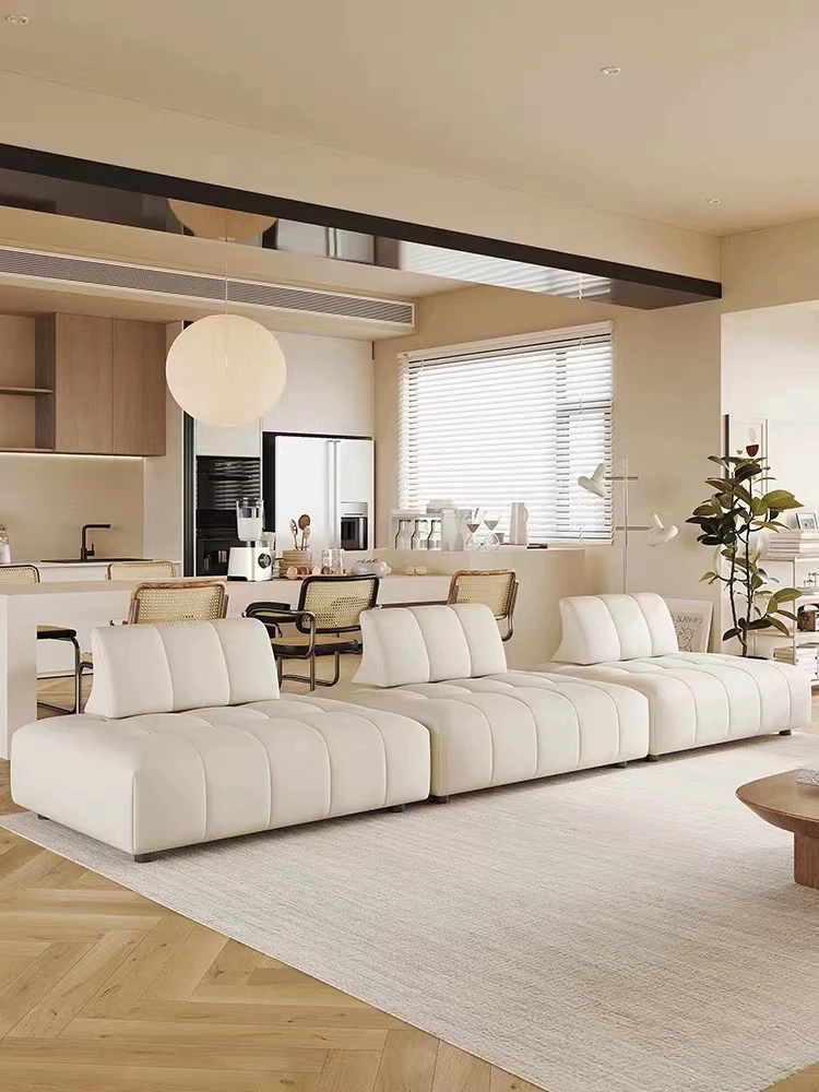 Modern Minimalist Italian-Style Cream Leather Sofa for Small Living Rooms - Trending Straight-Line Design Perfect for Compact Spaces