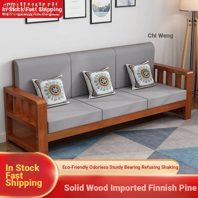 Modern Minimalist Solid Wood Sofa Set for Small Apartments - Corner Chaise Lounge Style Pine Sofa for Three in Chinese Design