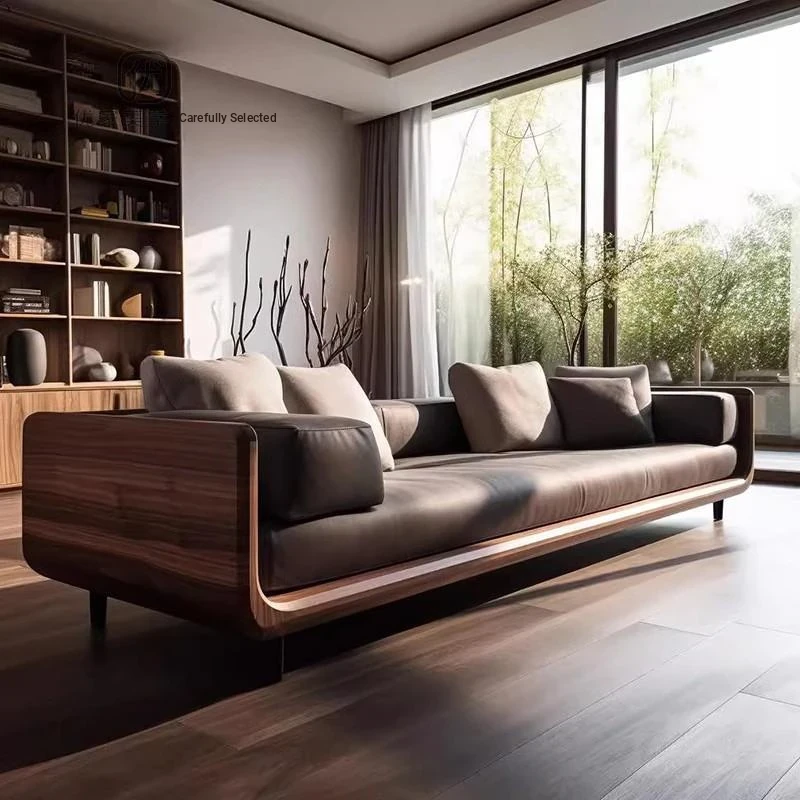 Modern Minimalist New Chinese-Style Solid North American Black Walnut Wood Sofa Set – Elegant and Stylish Living Room Straight-Line Leisure Sofa