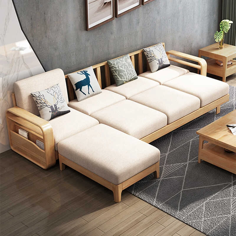 Nordic Minimalist Solid Wood Sofa - Modern Chaise Lounge for Living Room, Space-Saving Corner Sofa Bed for Small Homes