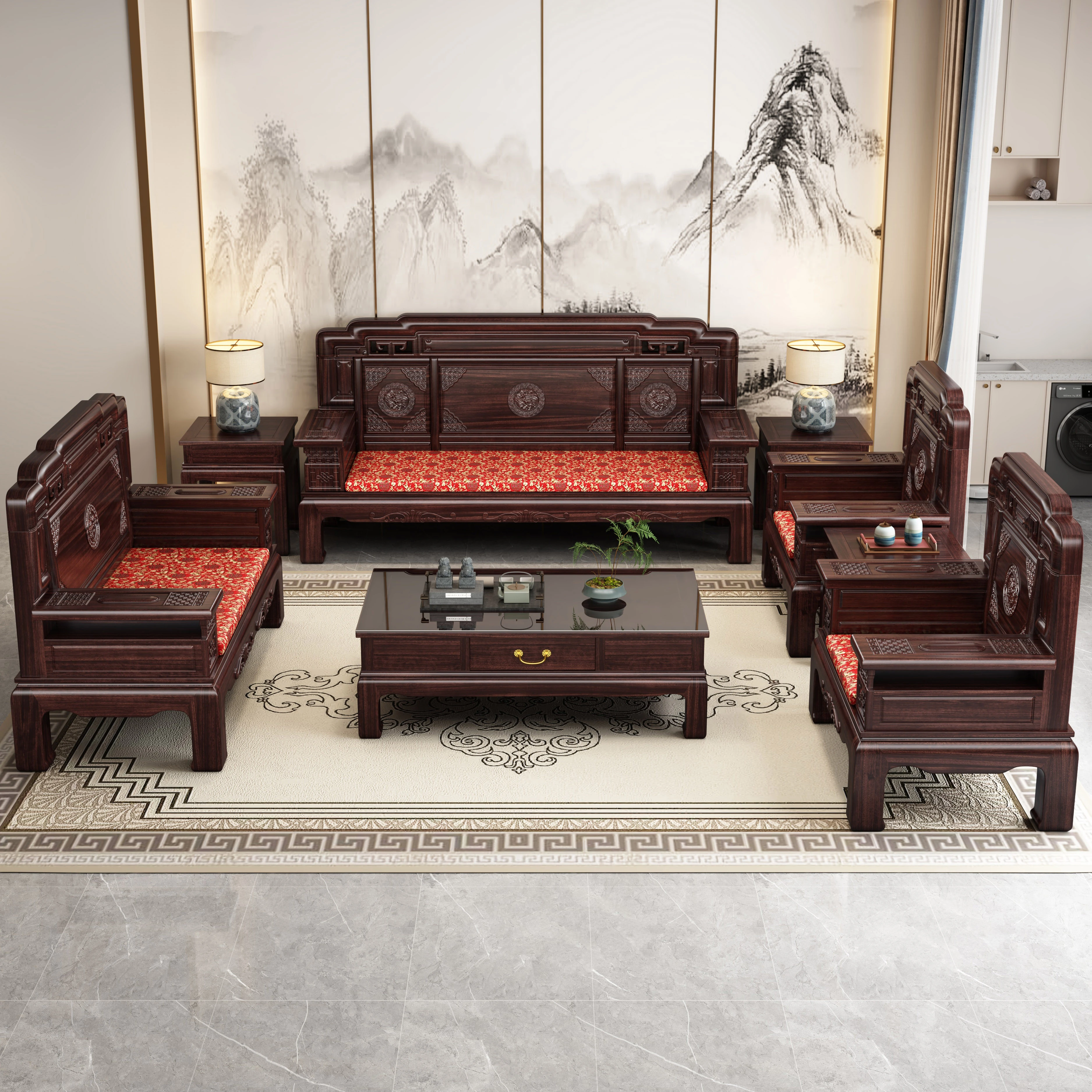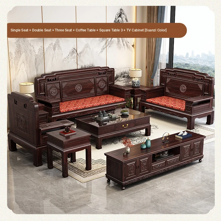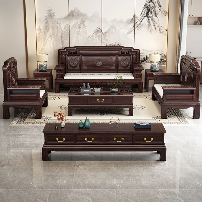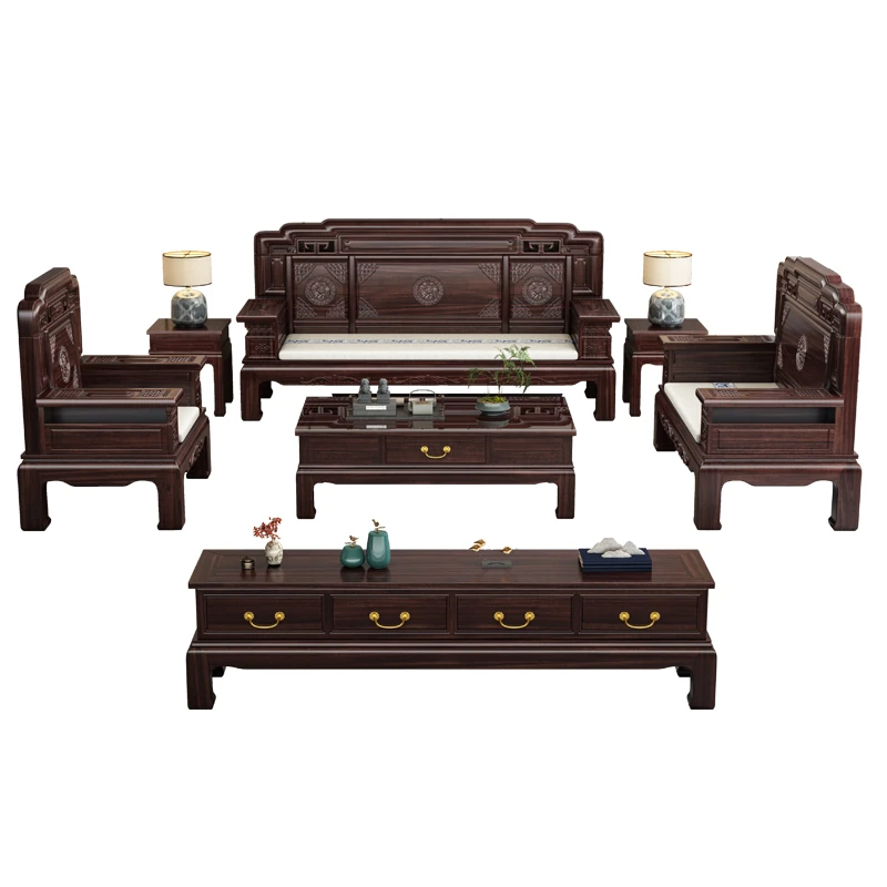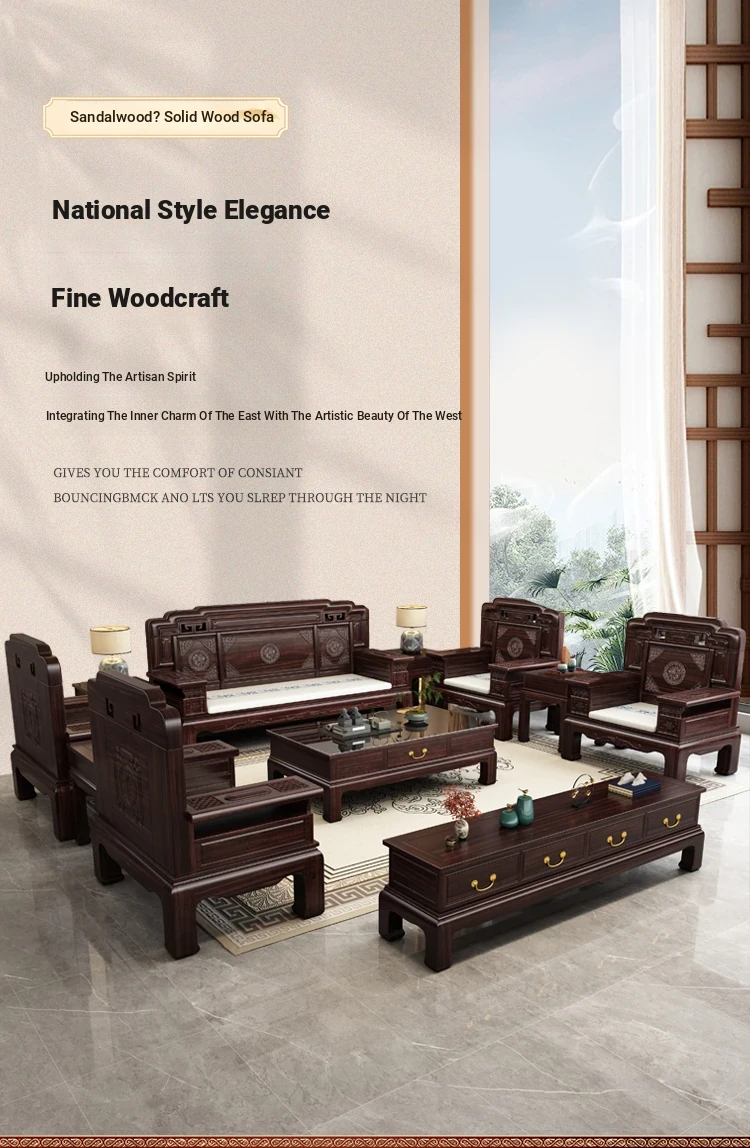 Classic Rosewood Sofa Set - New Chinese Style with Elegant Carvings, Minimalist Design, Versatile for All Seasons - Perfect for Your Living Room Furniture