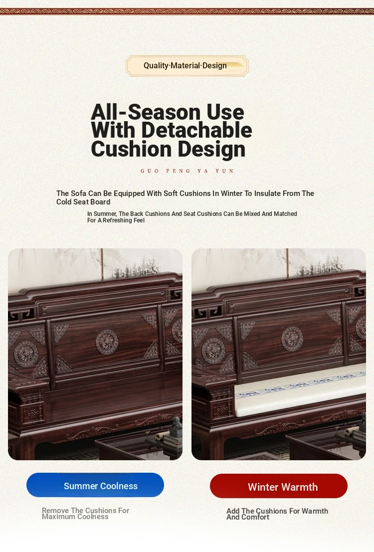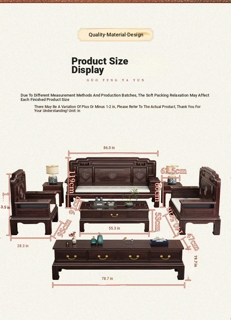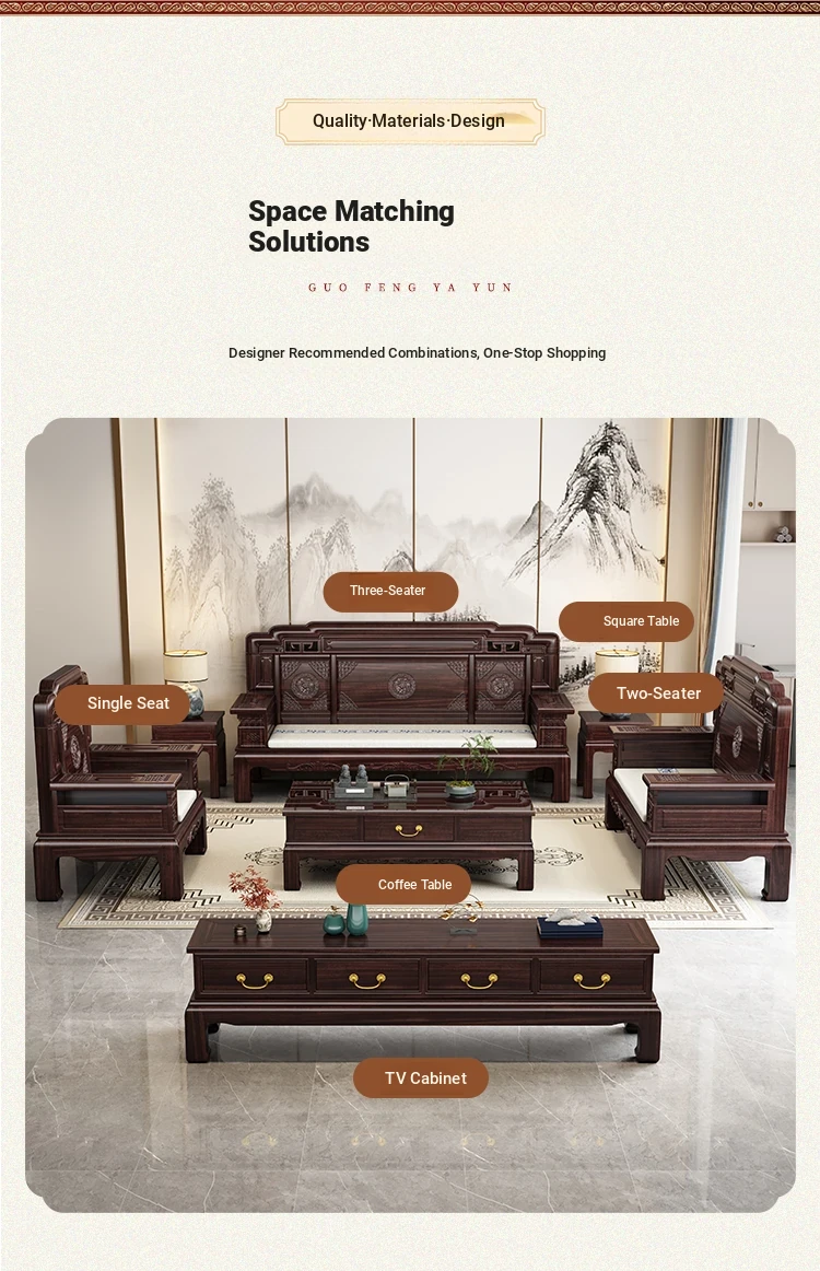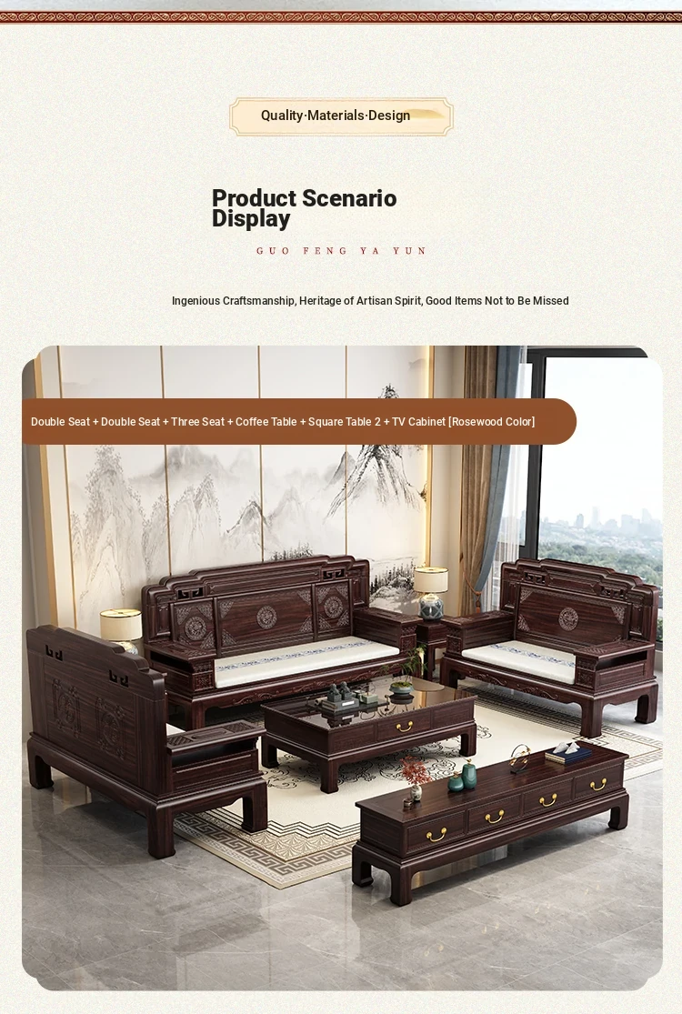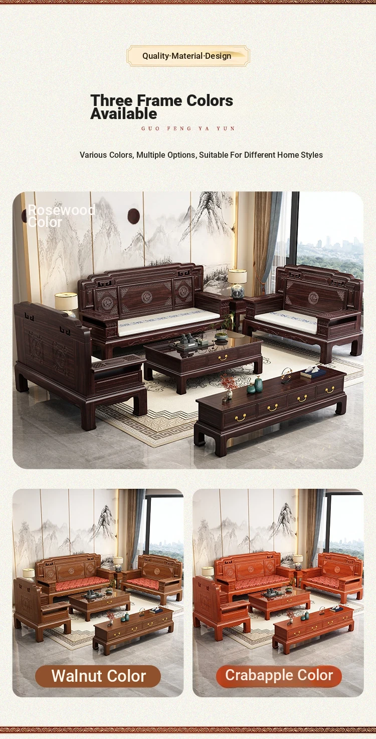 Classic Rosewood Sofa Set - New Chinese Style with Elegant Carvings, Minimalist Design, Versatile for All Seasons - Perfect for Your Living Room Furniture