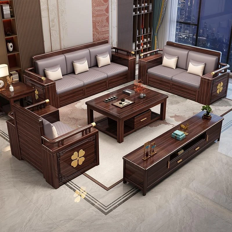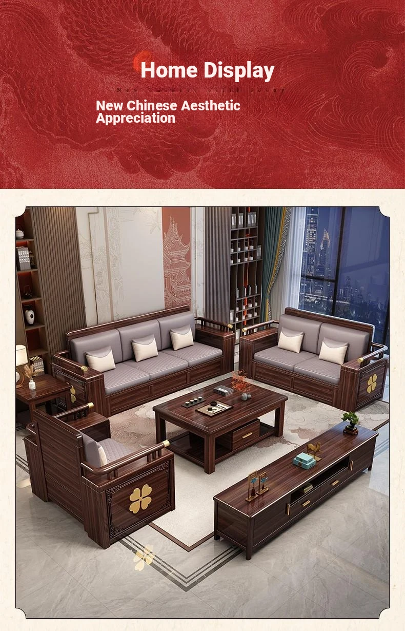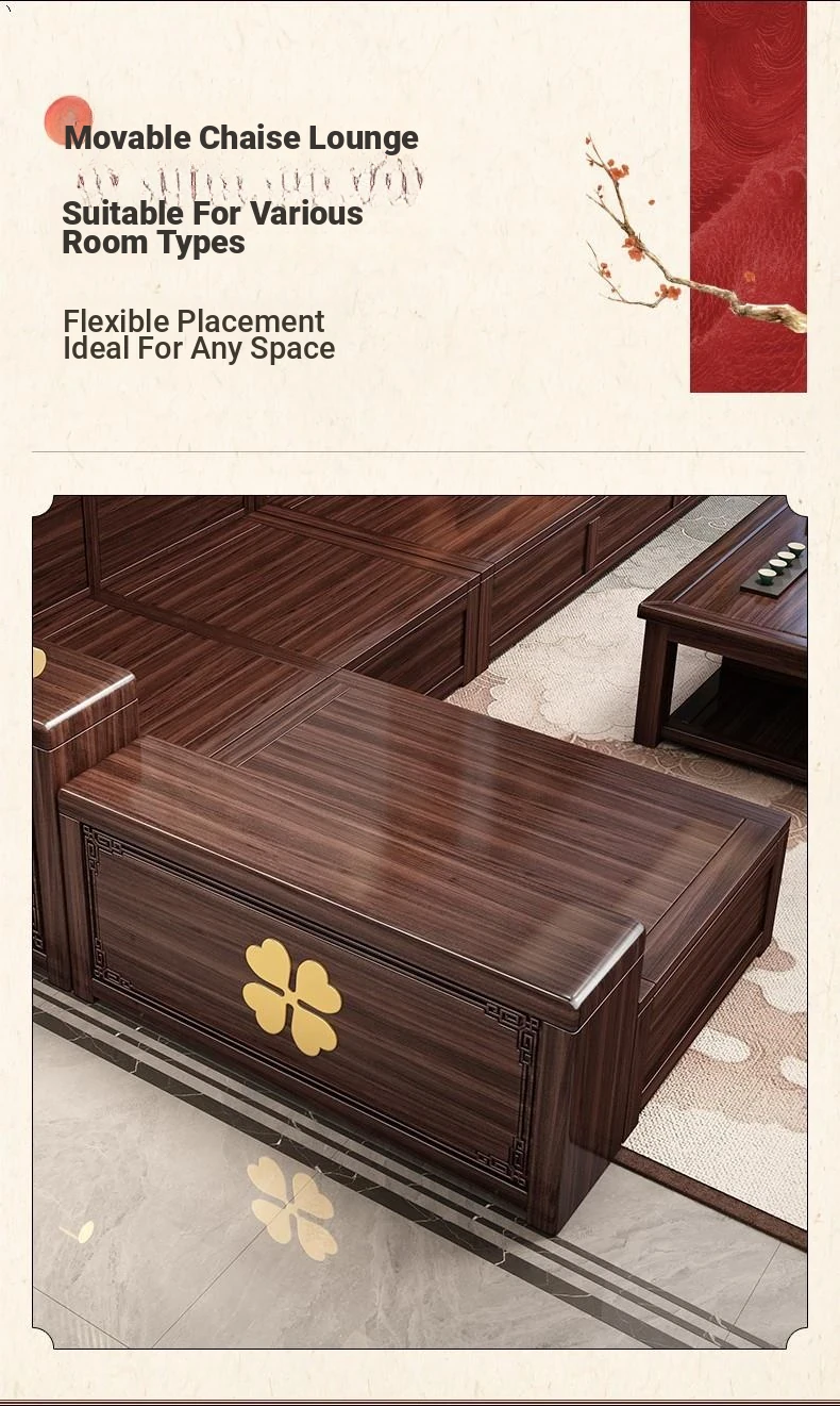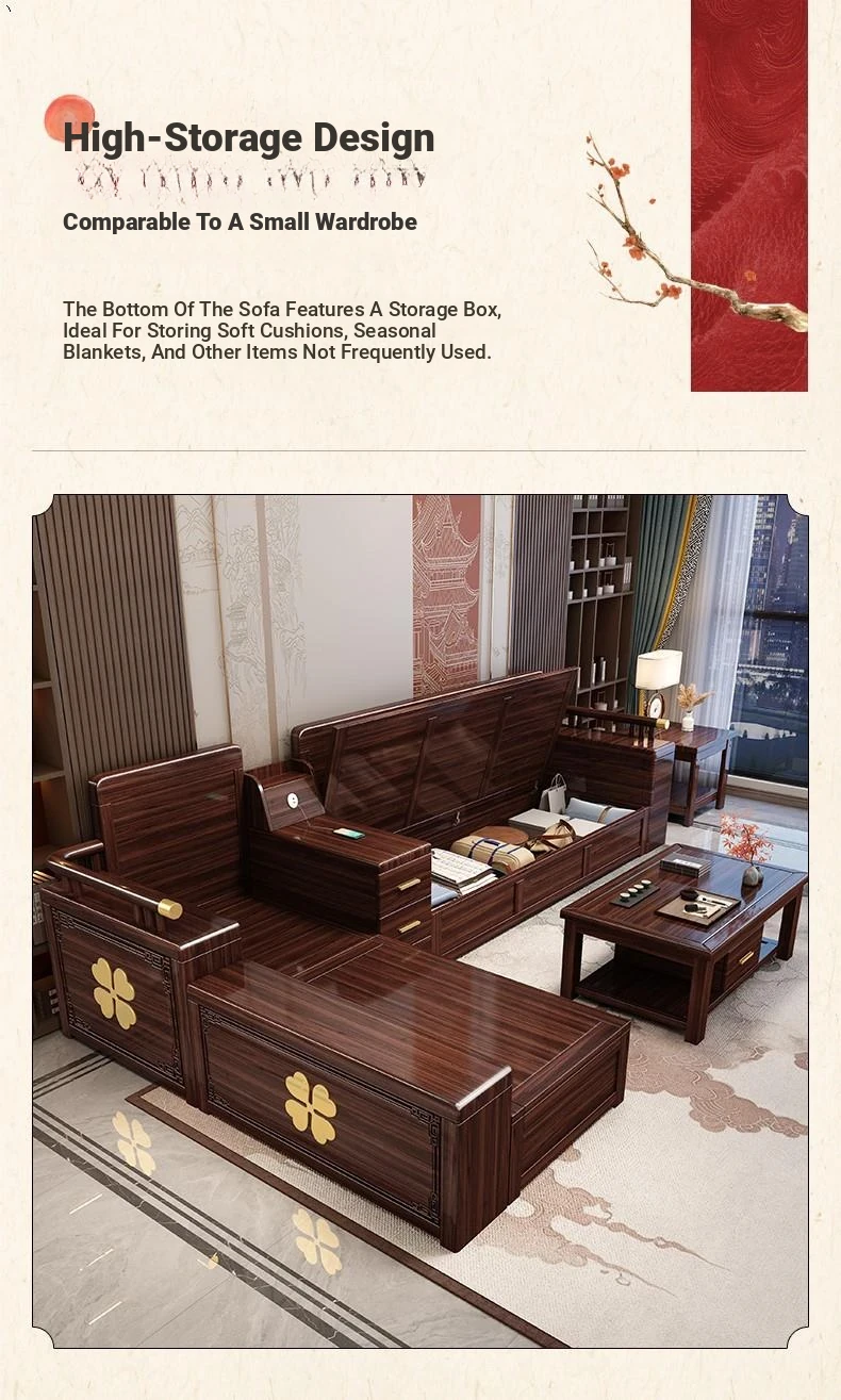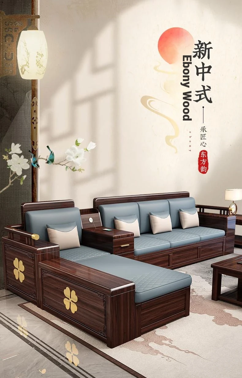 Modern Chinese Style Blackwood Solid Wood Sofa Set for Small Living Rooms – Elegant, Space-Saving Design with Storage and Carved Details for Year-Round Comfort