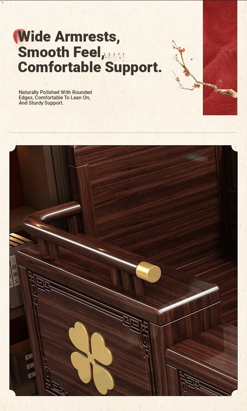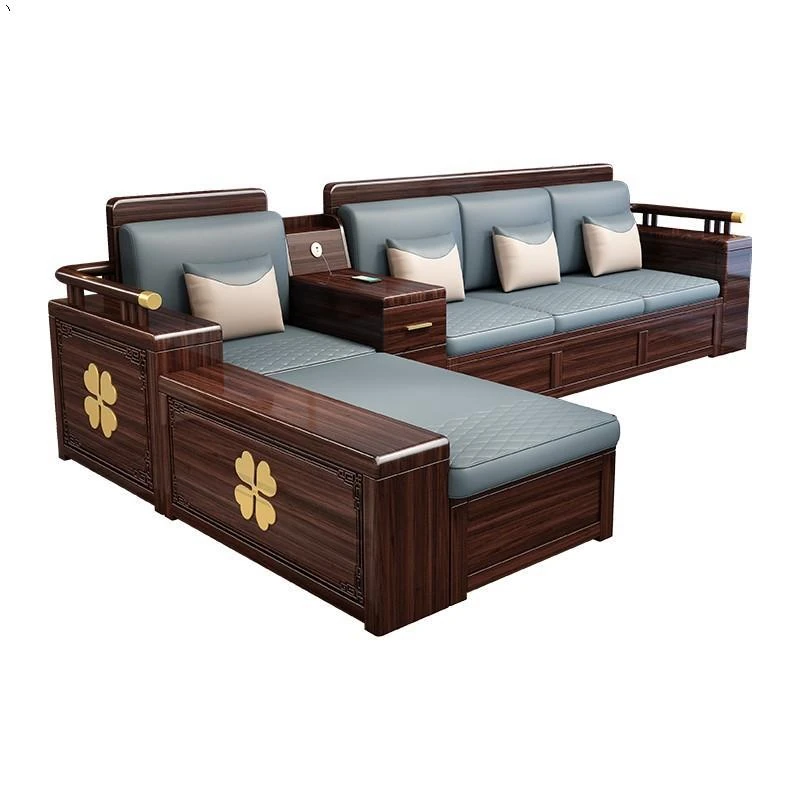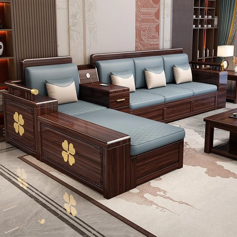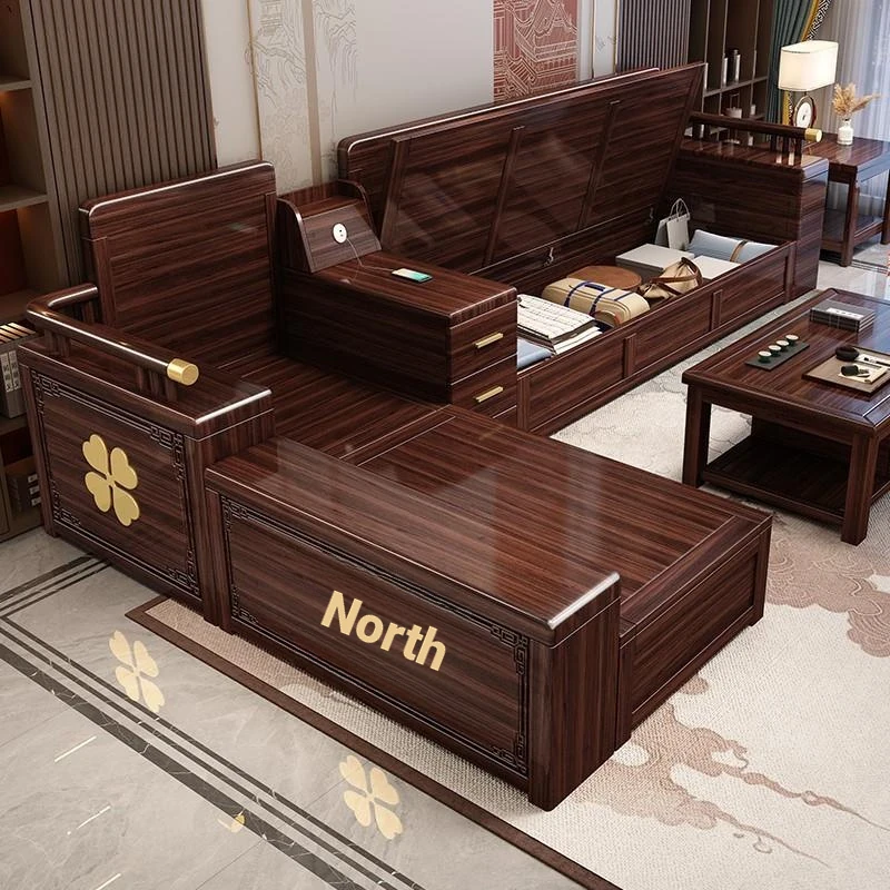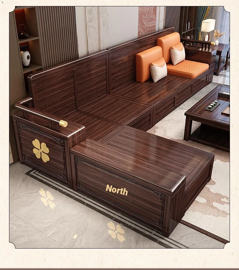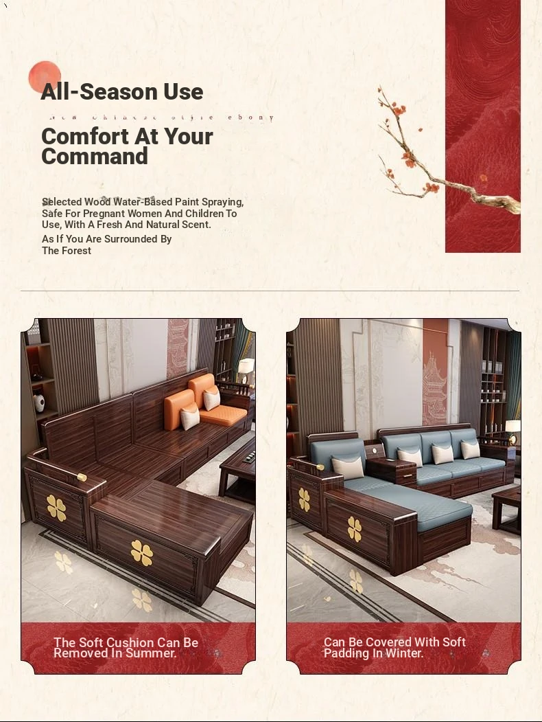 Modern Chinese Style Blackwood Solid Wood Sofa Set for Small Living Rooms – Elegant, Space-Saving Design with Storage and Carved Details for Year-Round Comfort