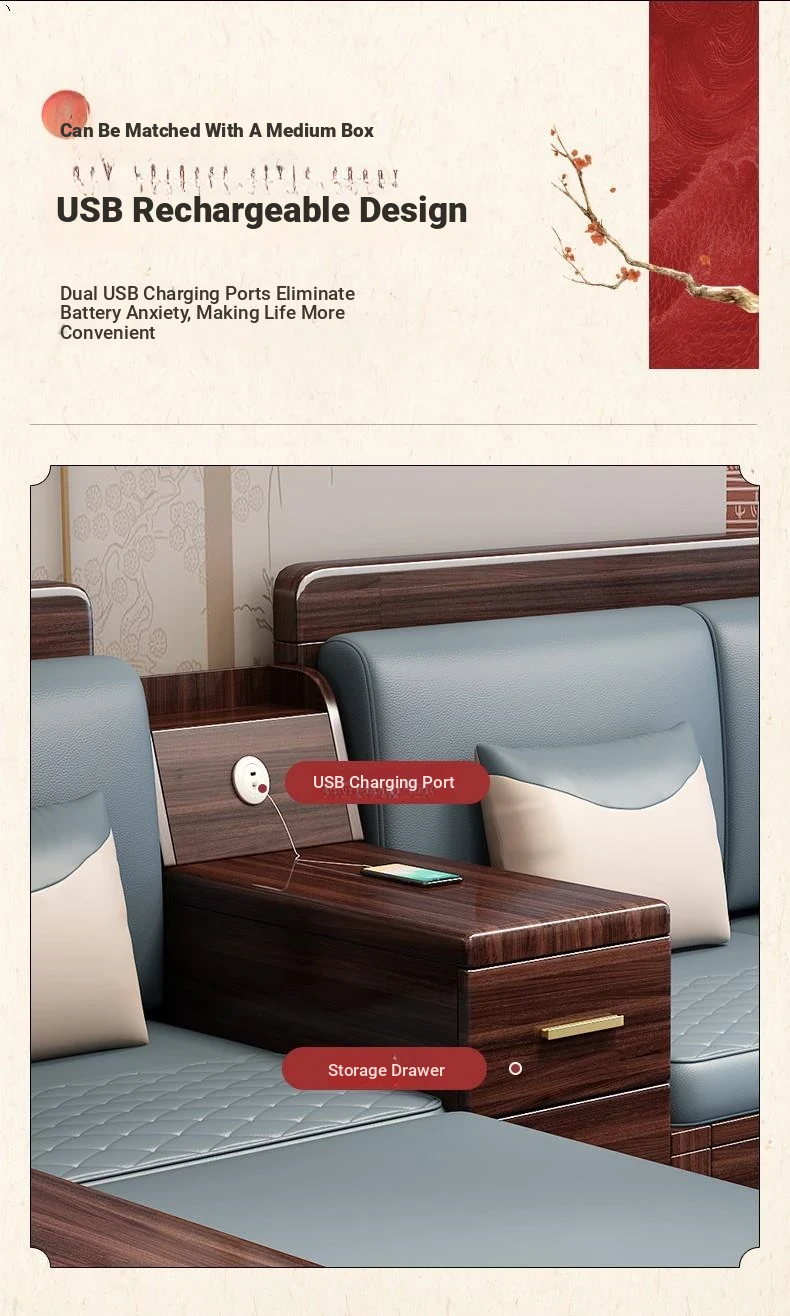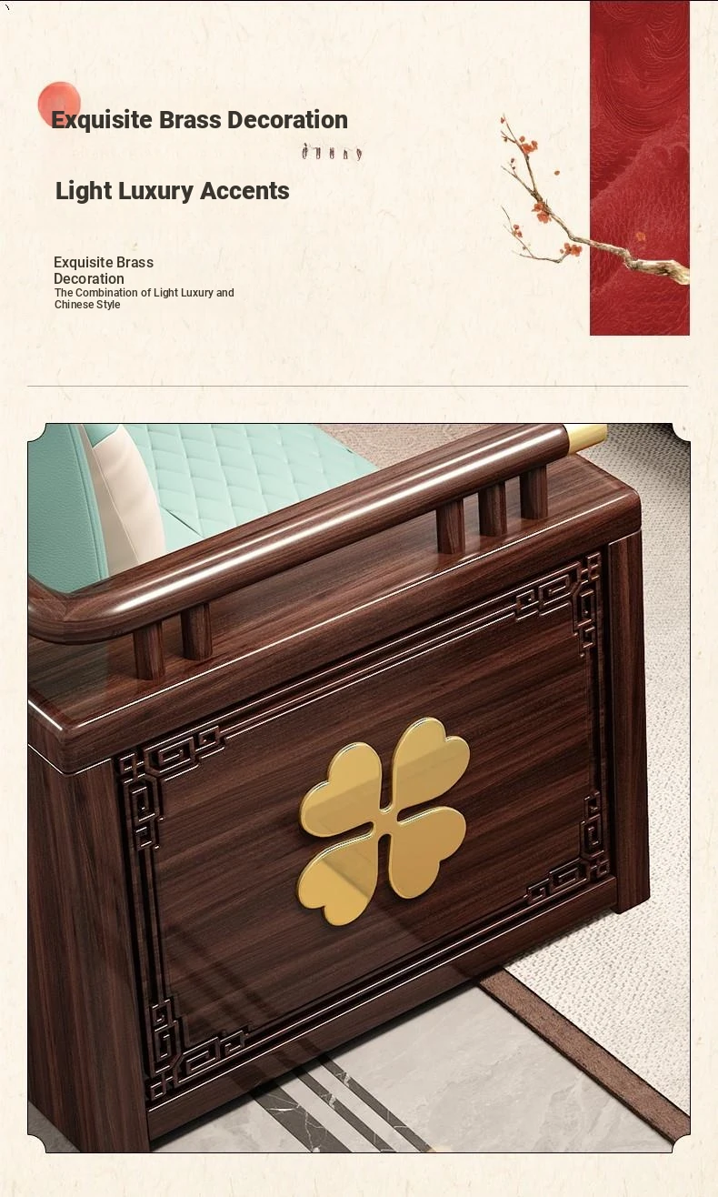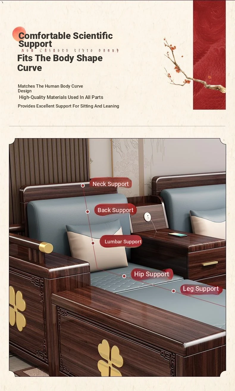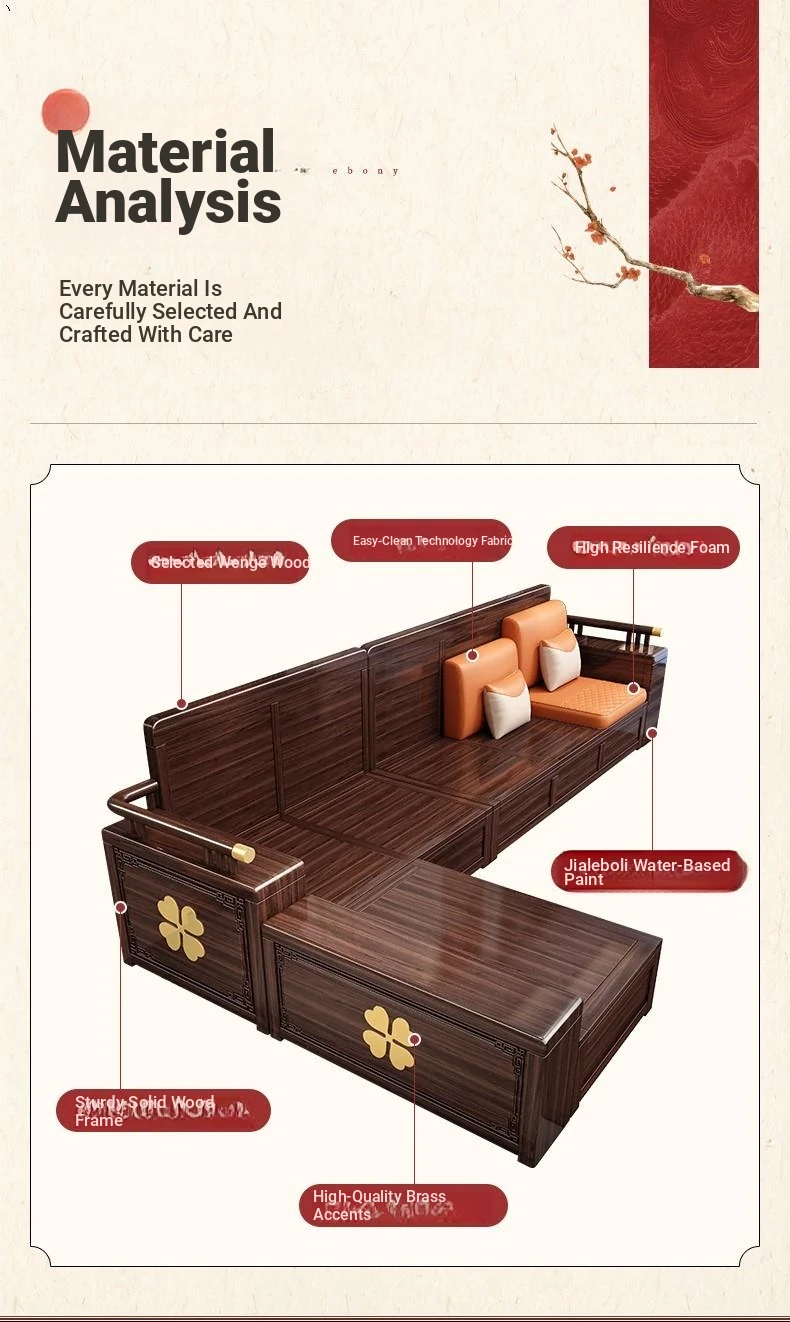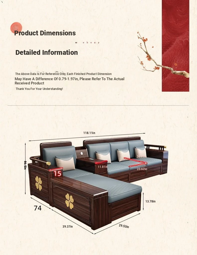 Modern Chinese Style Blackwood Solid Wood Sofa Set for Small Living Rooms – Elegant, Space-Saving Design with Storage and Carved Details for Year-Round Comfort