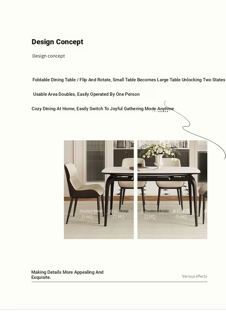 Modern Minimalist Expandable Round Dining Table for Small Spaces - 2024 New Design, Versatile Square and Round Use for Home Dining