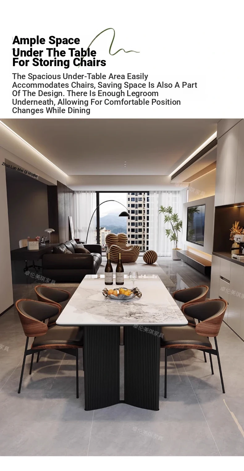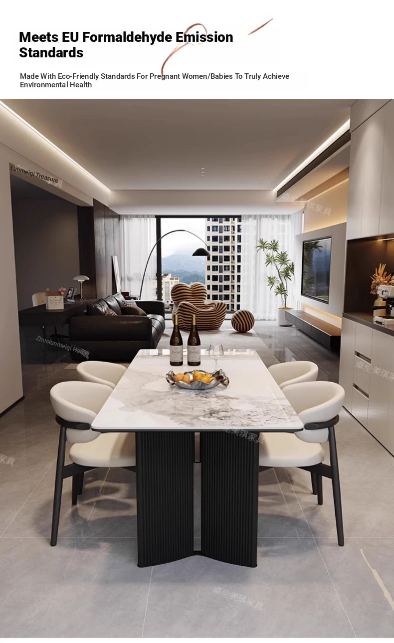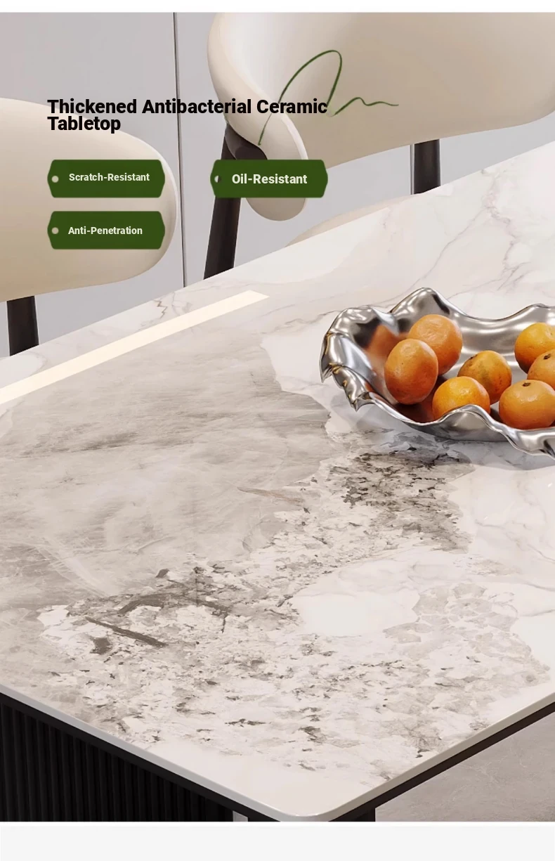 Modern Rectangular Dining Table and Chair Set - Guobuzhuolun Meiqi Premium Ceramic Design for 2025, Perfect for Home Use, Stylish and Minimalist Aesthetic