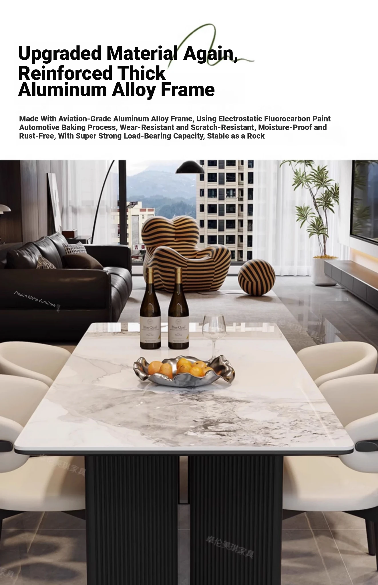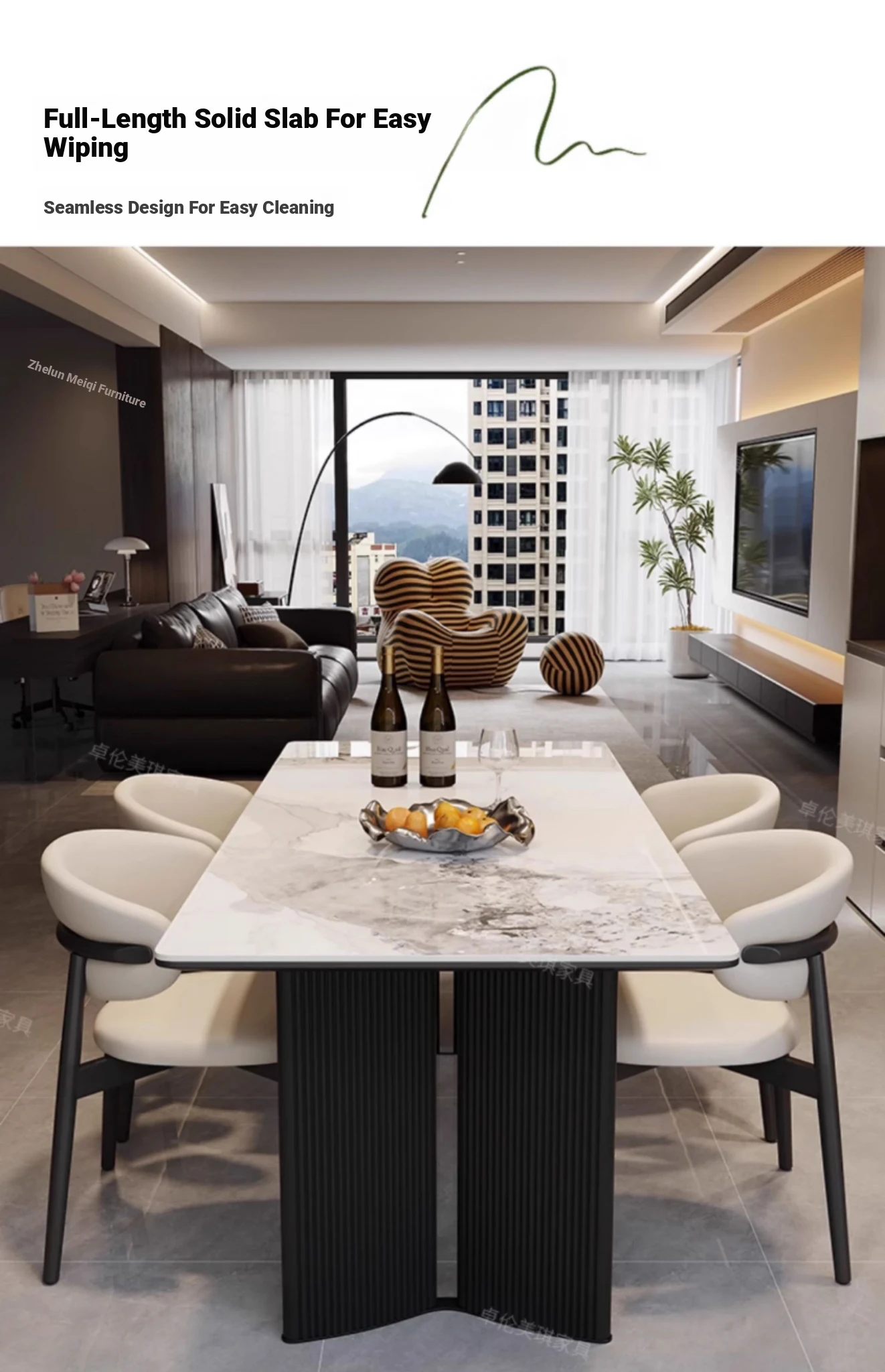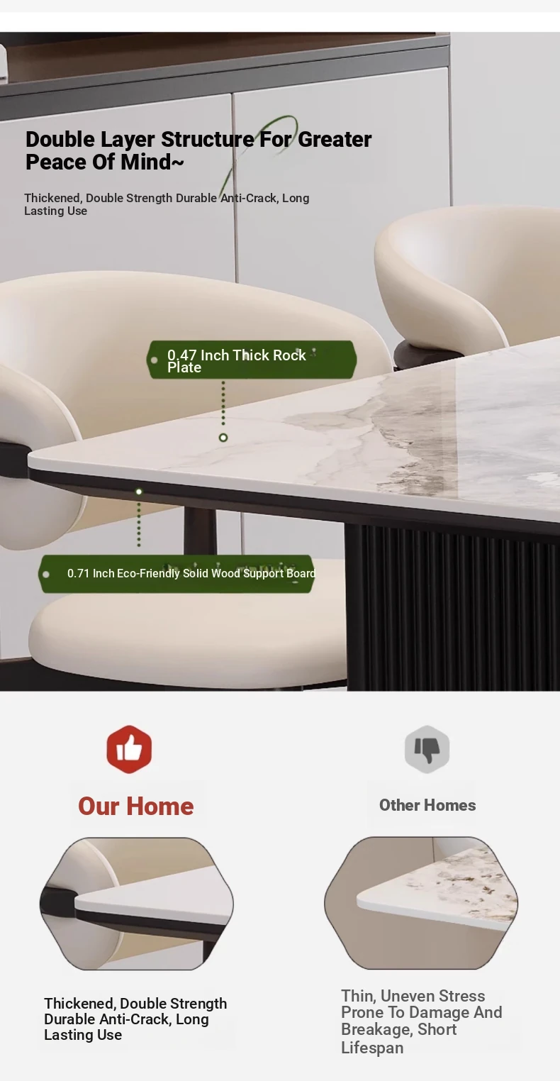 Modern Rectangular Dining Table and Chair Set - Guobuzhuolun Meiqi Premium Ceramic Design for 2025, Perfect for Home Use, Stylish and Minimalist Aesthetic