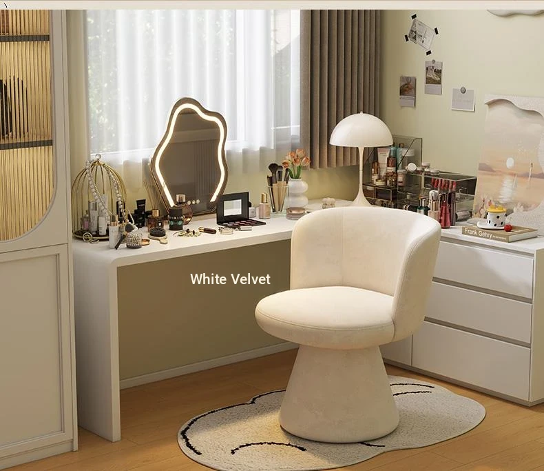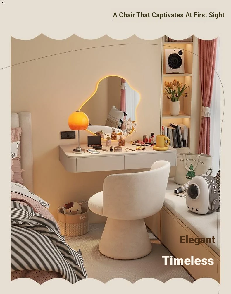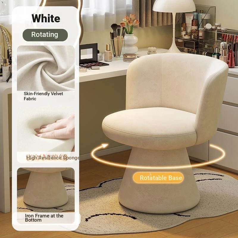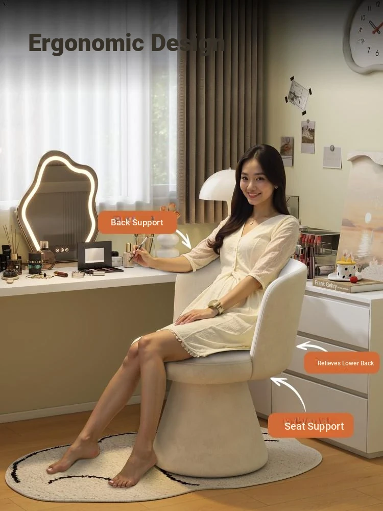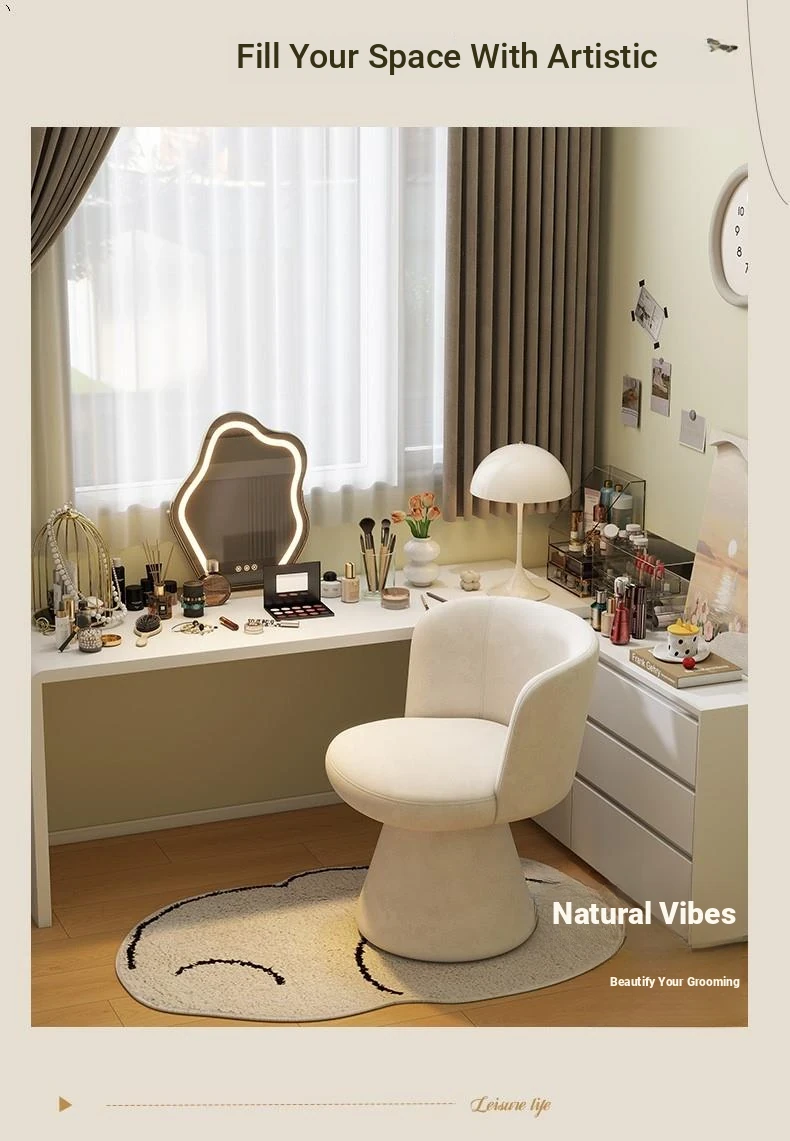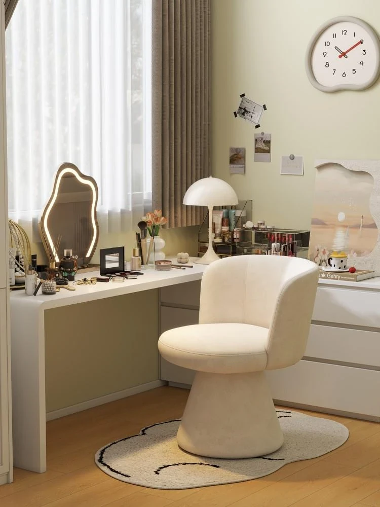 Nordic Style Makeup Stool - Swivel Vanity Chair, Designer Lounge Chair for Bedroom, Cream Aesthetic Makeup Table Seat, Perfect for Chic Interiors