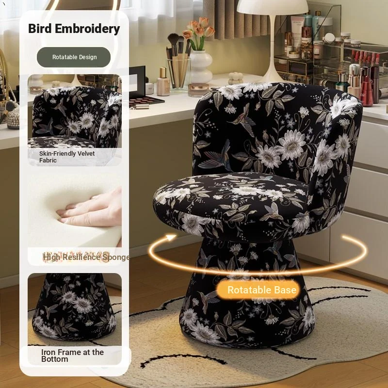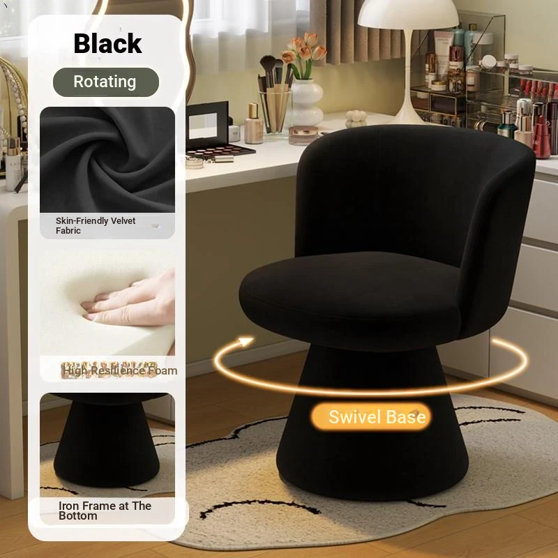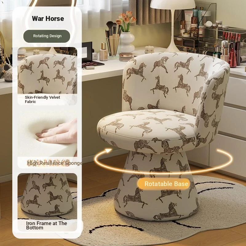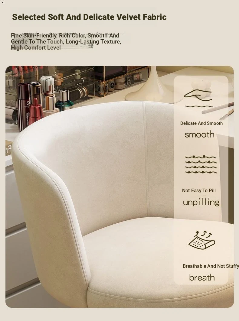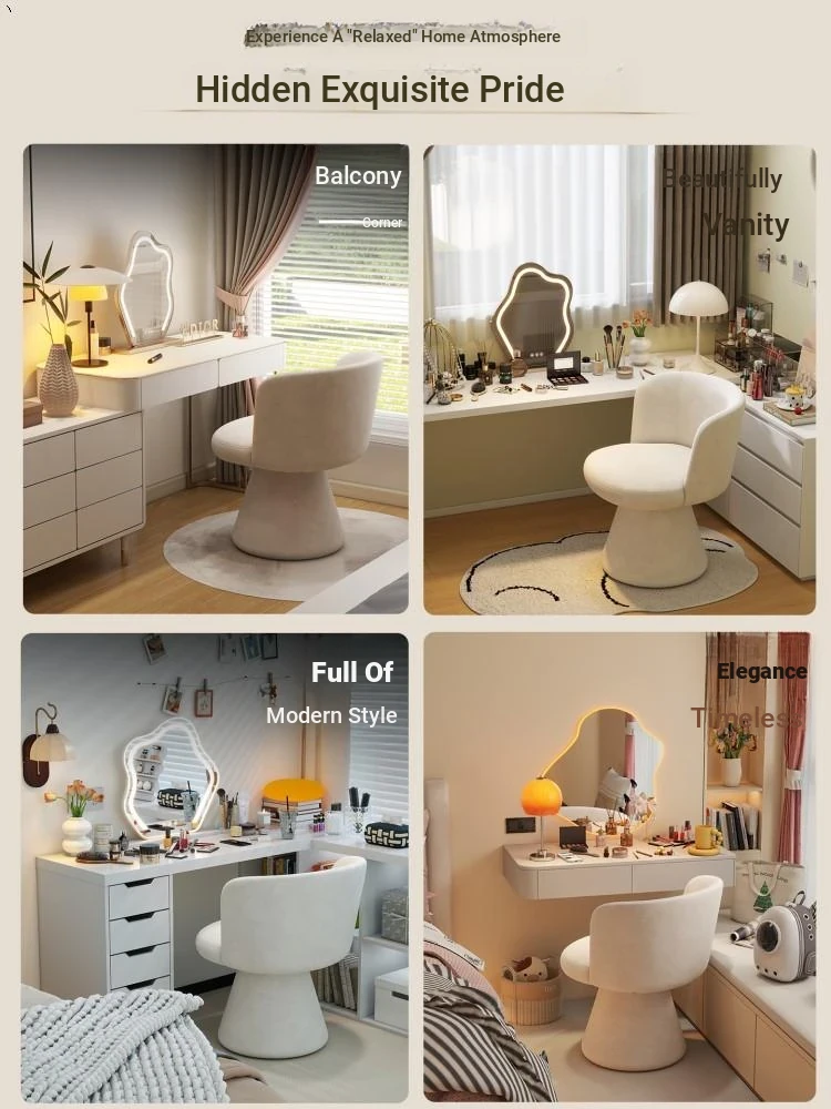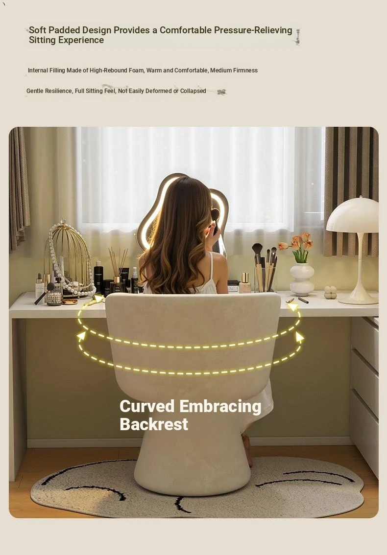 Nordic Style Makeup Stool - Swivel Vanity Chair, Designer Lounge Chair for Bedroom, Cream Aesthetic Makeup Table Seat, Perfect for Chic Interiors