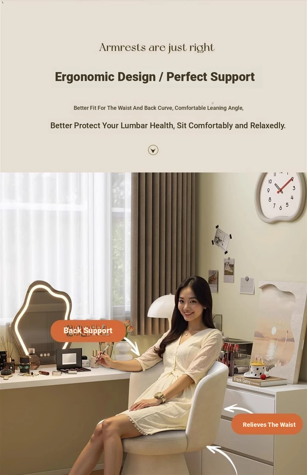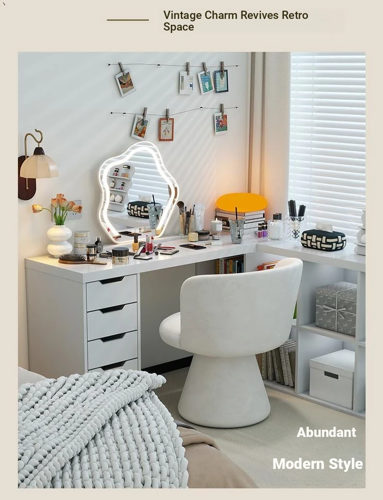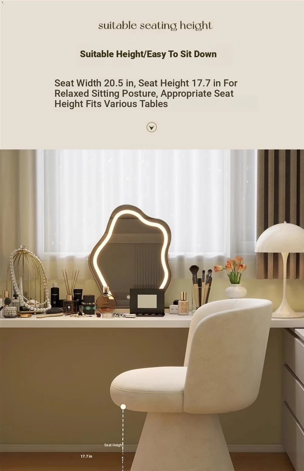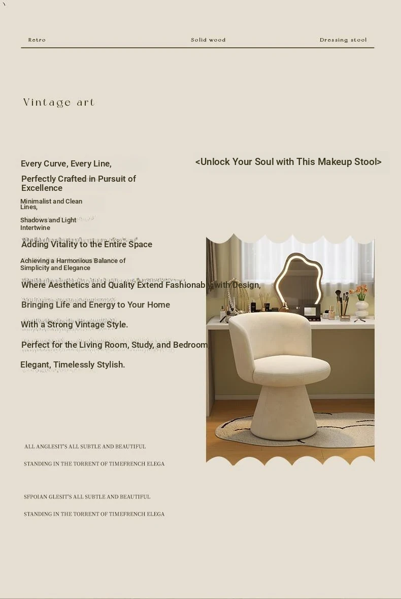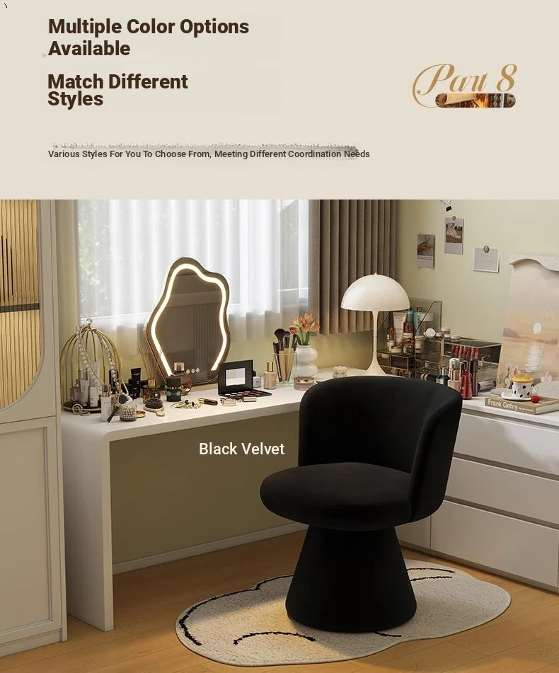 Nordic Style Makeup Stool - Swivel Vanity Chair, Designer Lounge Chair for Bedroom, Cream Aesthetic Makeup Table Seat, Perfect for Chic Interiors