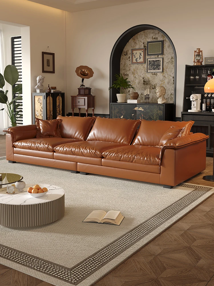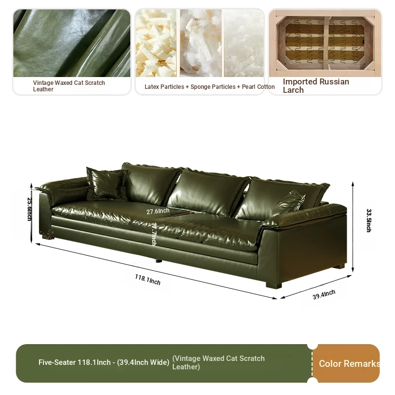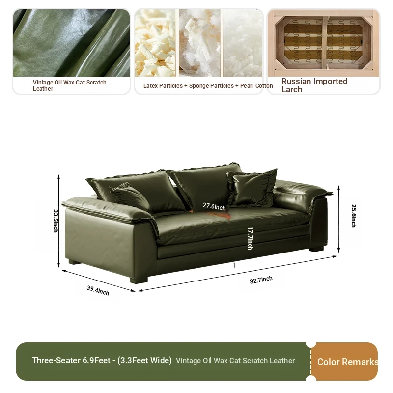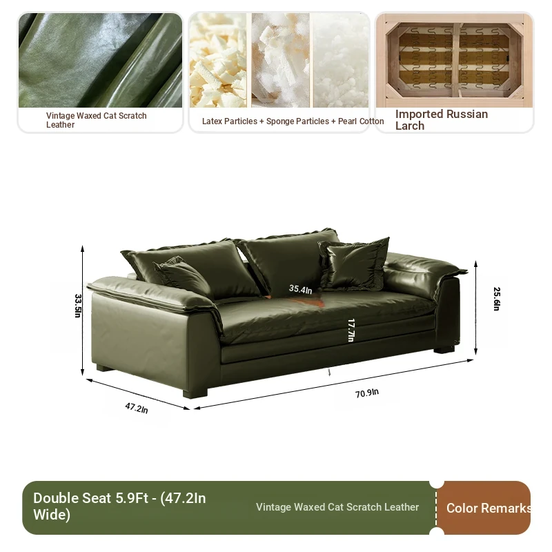 Retro Green Oil Wax Leather Italian Minimalist Sofa - Modern Double Layer Cushions for Small Spaces - Stylish and Comfortable Design