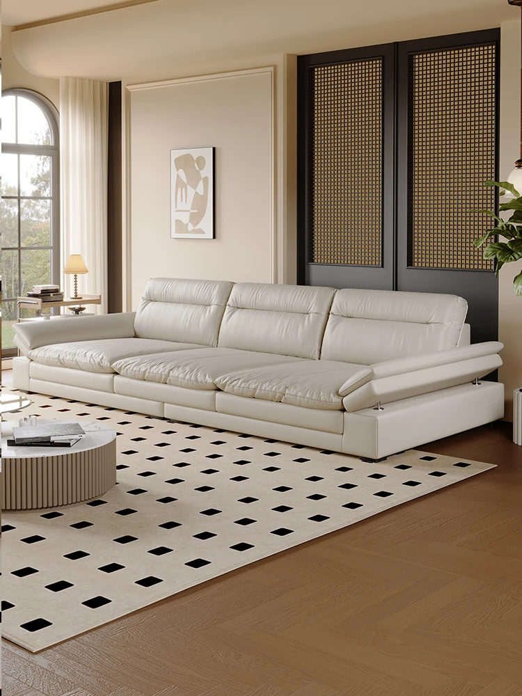 2025 New Italian Luxury Multifunctional Cat Scratch Leather Sailboat Sofa - High Back Design for Spacious and Compact Living Rooms