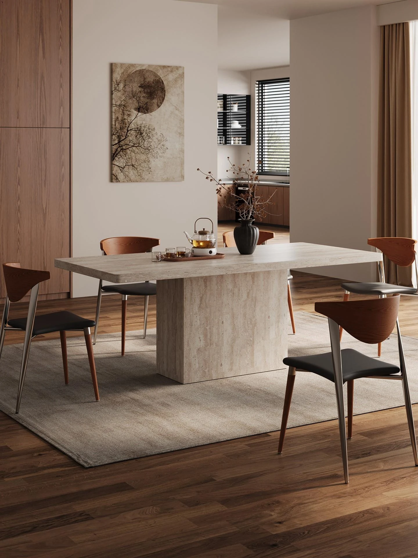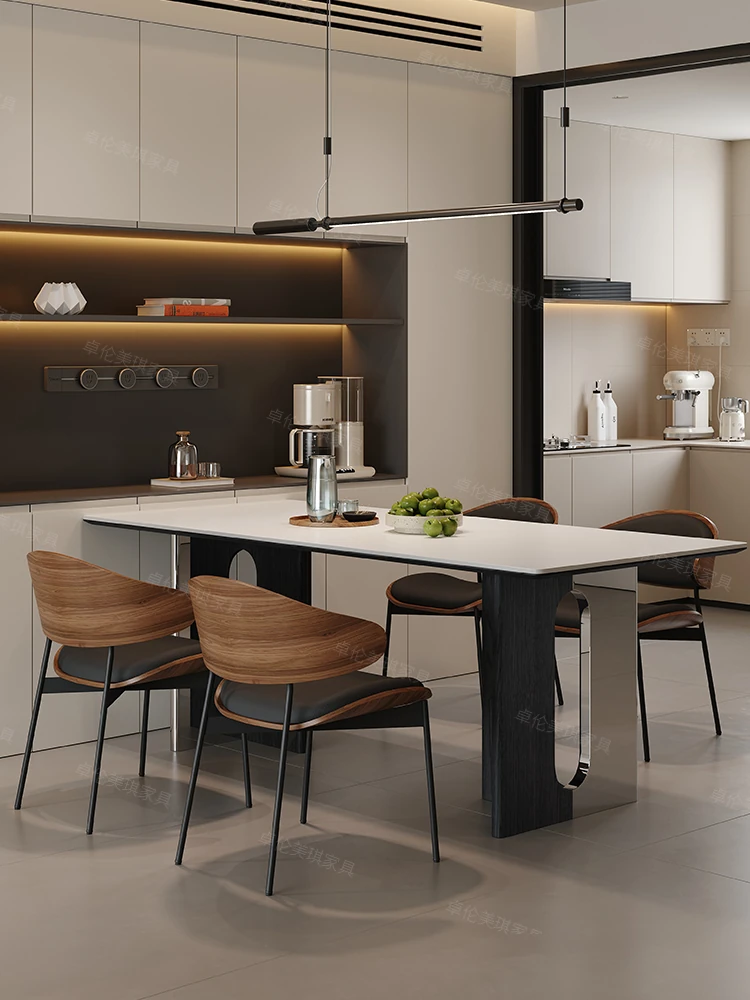 French Vintage Style Hanging Rock Plate Dining Table - Modern Minimalist High-End Rectangular Table for Home Use - New 2024 Collection