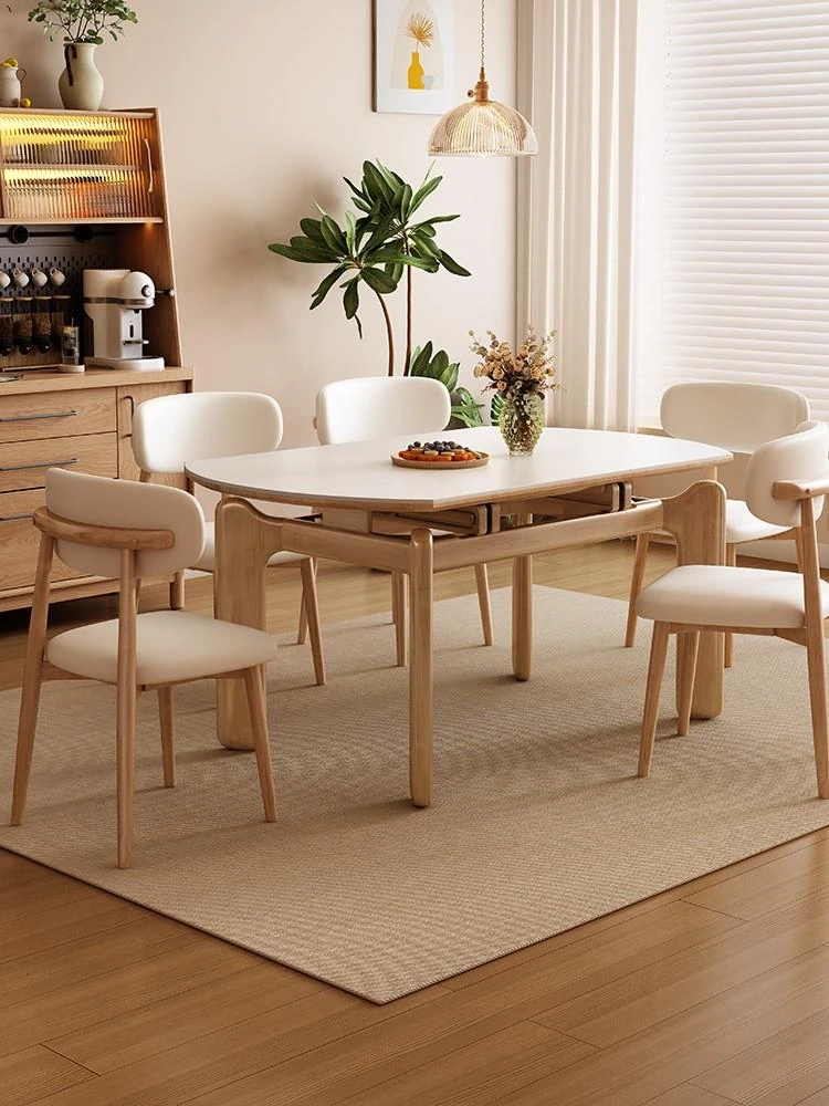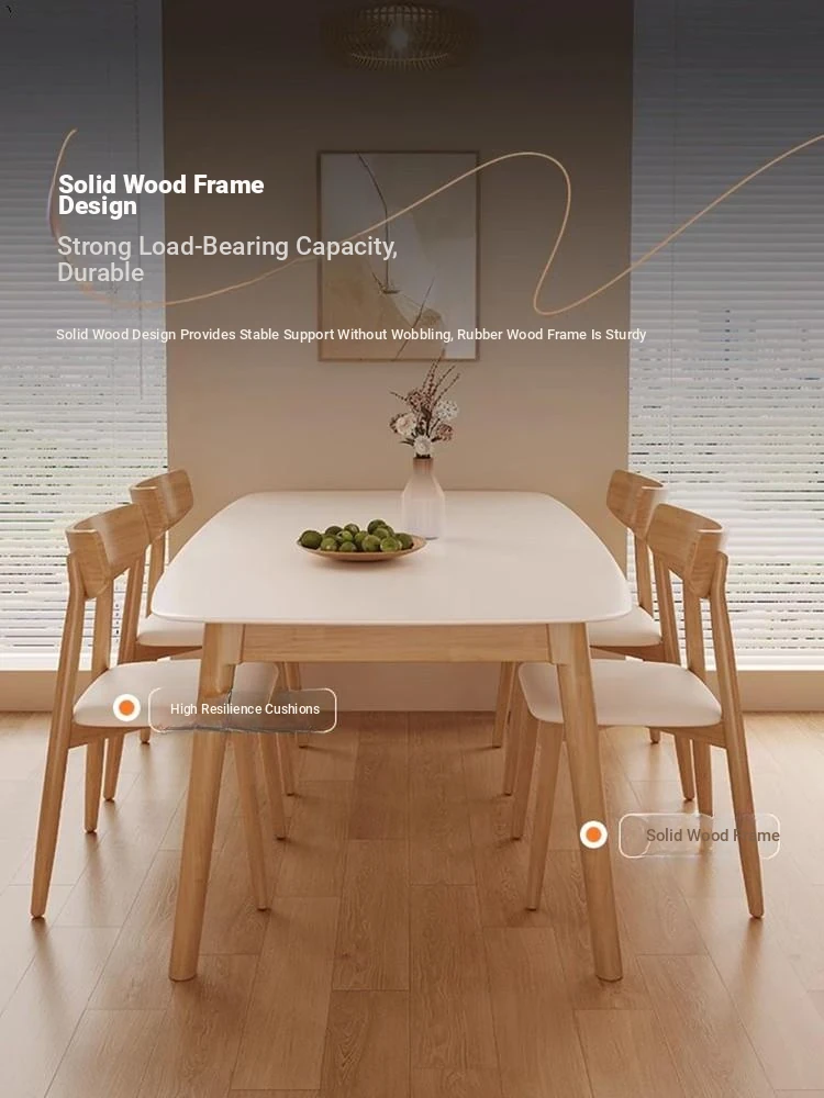 French Style Solid Wood Creamy Rock Plate Dining Table and Chair Set - Modern Minimalist Design for Small Spaces, Rectangular Solid Wood Dining Table for Home Use
