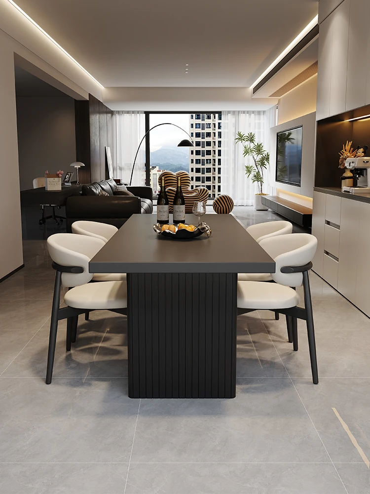 Italian Minimalist Luxury Designer Stone Dining Table and Chairs - Elegant Black High-End Nordic Small Space Dining Set for Home