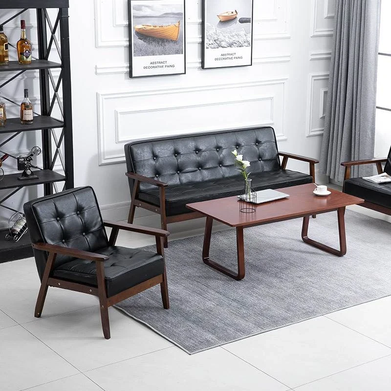 Retro Minimalist Modern Black Sofa Set for Living Room, Stylish 2-Seater for Family & Bedroom, Perfect for Small Spaces or Boutique Cafés - Includes Coffee Table