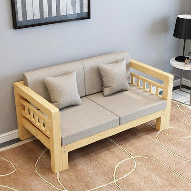 Modern Minimalist Solid Wood Sofa Set for Small Living Rooms - L-Shaped Pine Sofa with Chaise Lounge, Perfect for Three People, Chinese Style