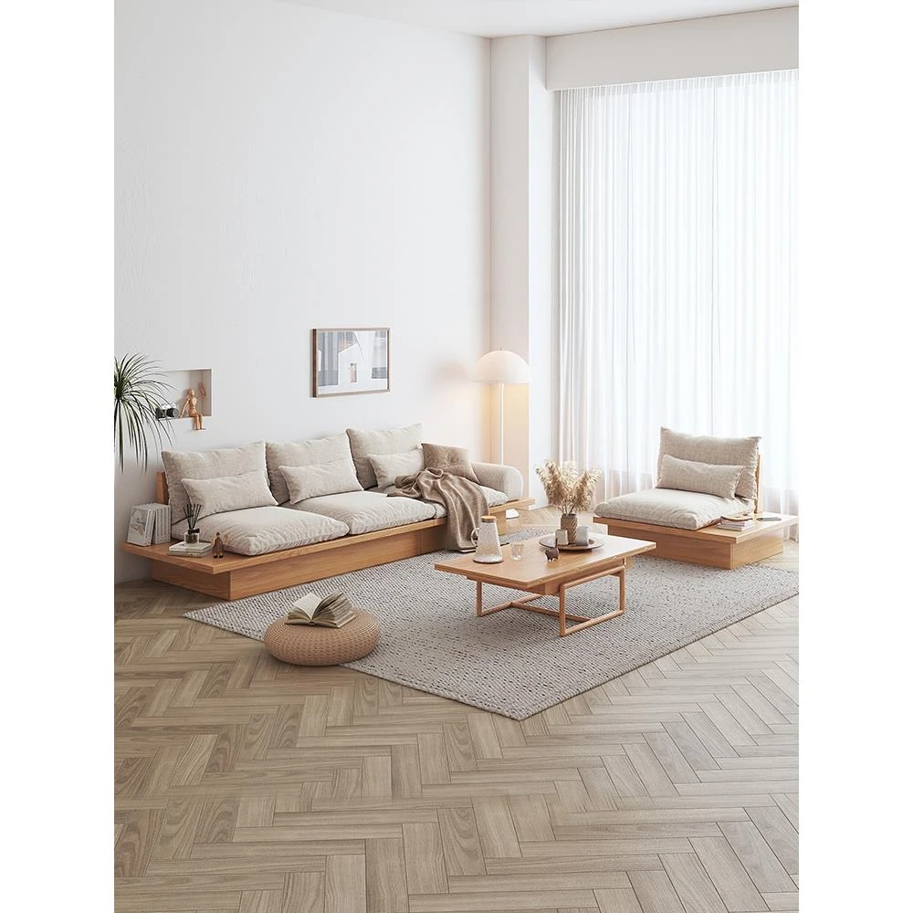 Japanese Wabi-Sabi Style Solid Wood Sofa - Minimalist Nordic Fabric Seating for Small Living Spaces with Storage - Tatami Platform Design