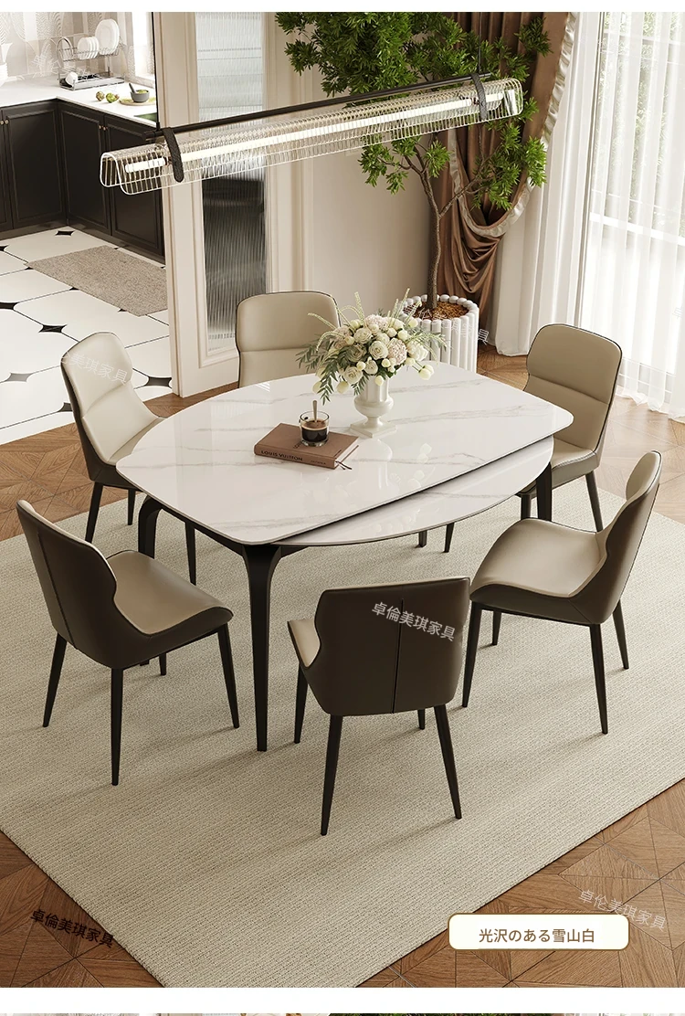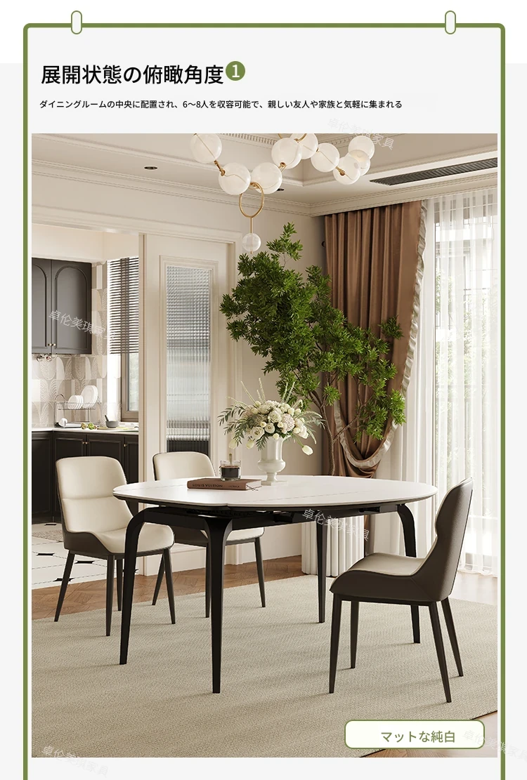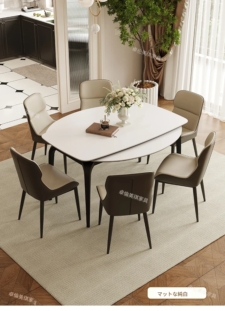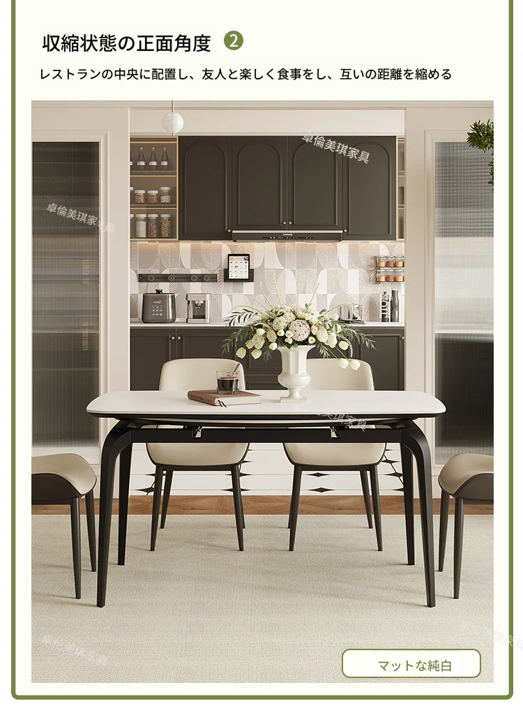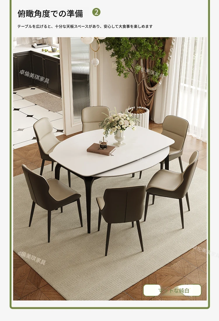 2024年新作!伸縮可能な岩板ダイニングテーブル - 小さなリビングにもぴったり!丸型と四角型の2WAYデザインで、家族や友人との食事をより楽しく!おしゃれで機能的なテーブルで、毎日の食卓を特別に演出します。