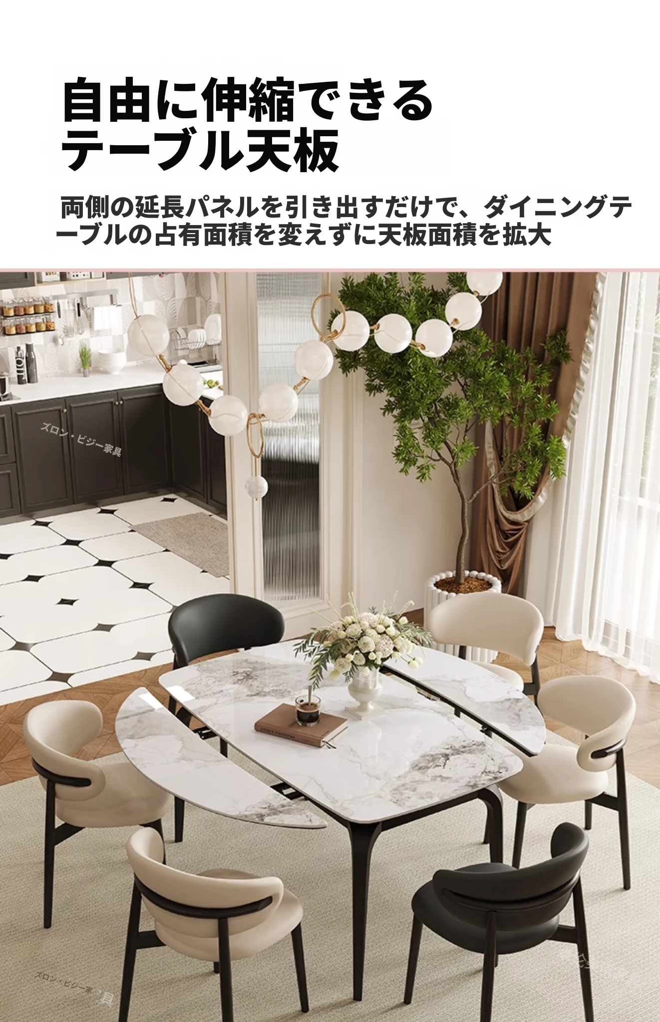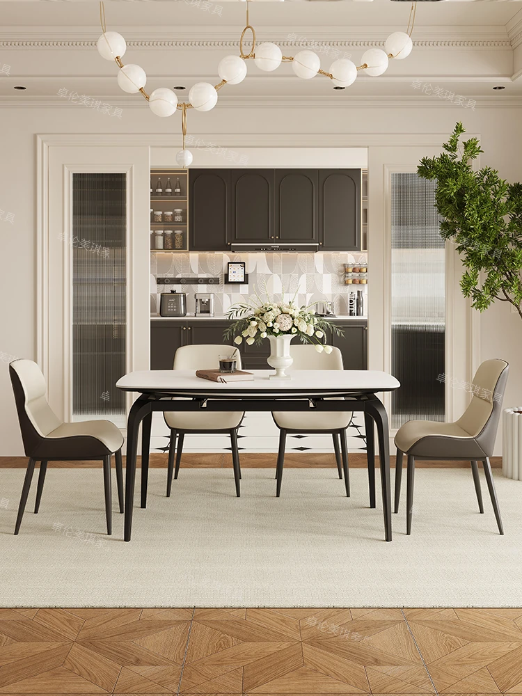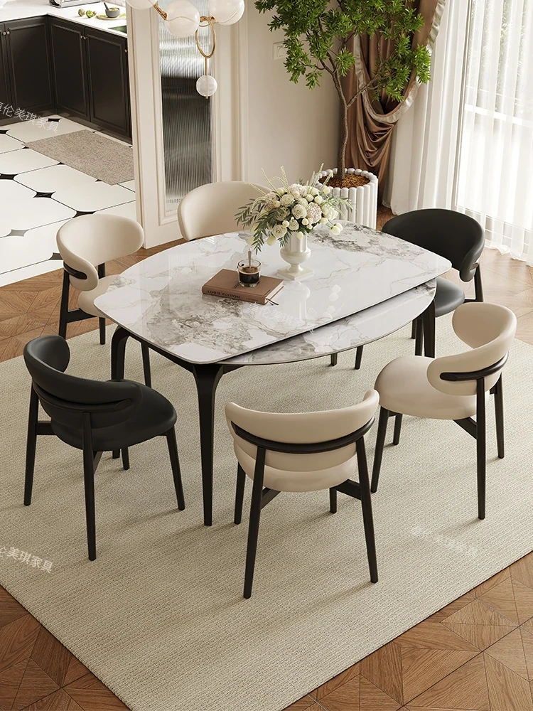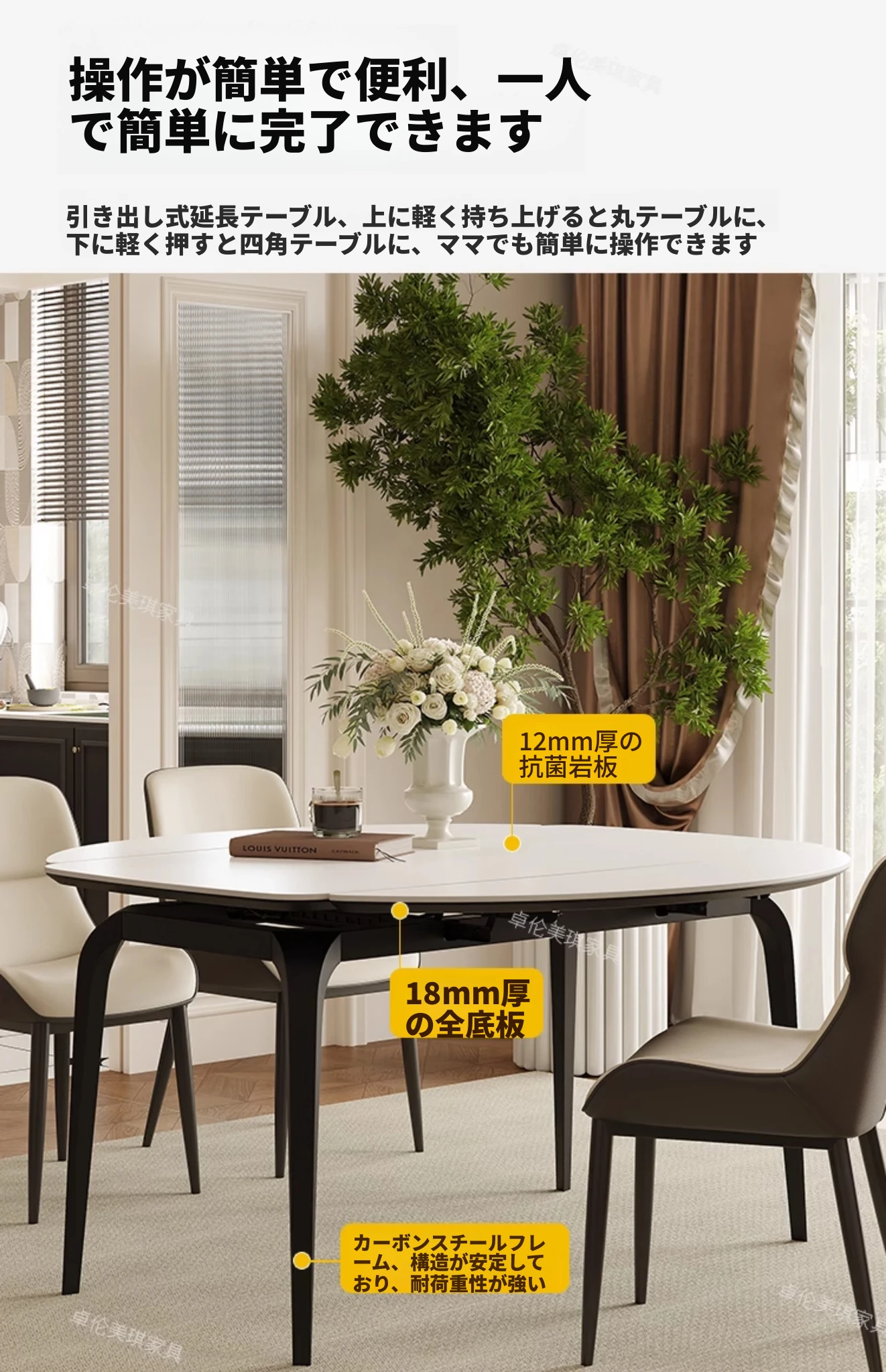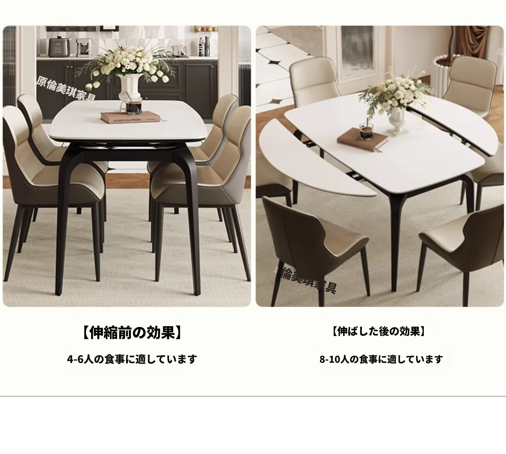 2024年新作!伸縮可能な岩板ダイニングテーブル - 小さなリビングにもぴったり!丸型と四角型の2WAYデザインで、家族や友人との食事をより楽しく!おしゃれで機能的なテーブルで、毎日の食卓を特別に演出します。