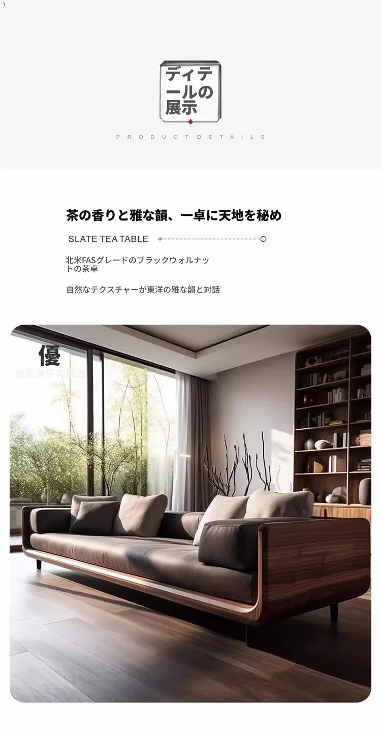 2025年最新款新中式北美黒胡桃木ソファ|高級感溢れるリビングにぴったりな直排式デザイン!上質な天然木材を使用し、洗練されたスタイルでお洒落な空間を演出します。