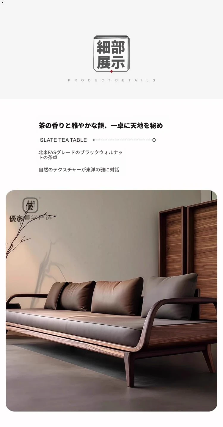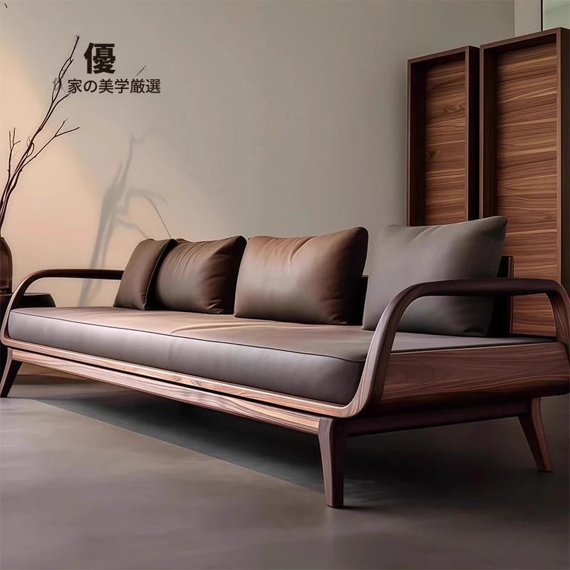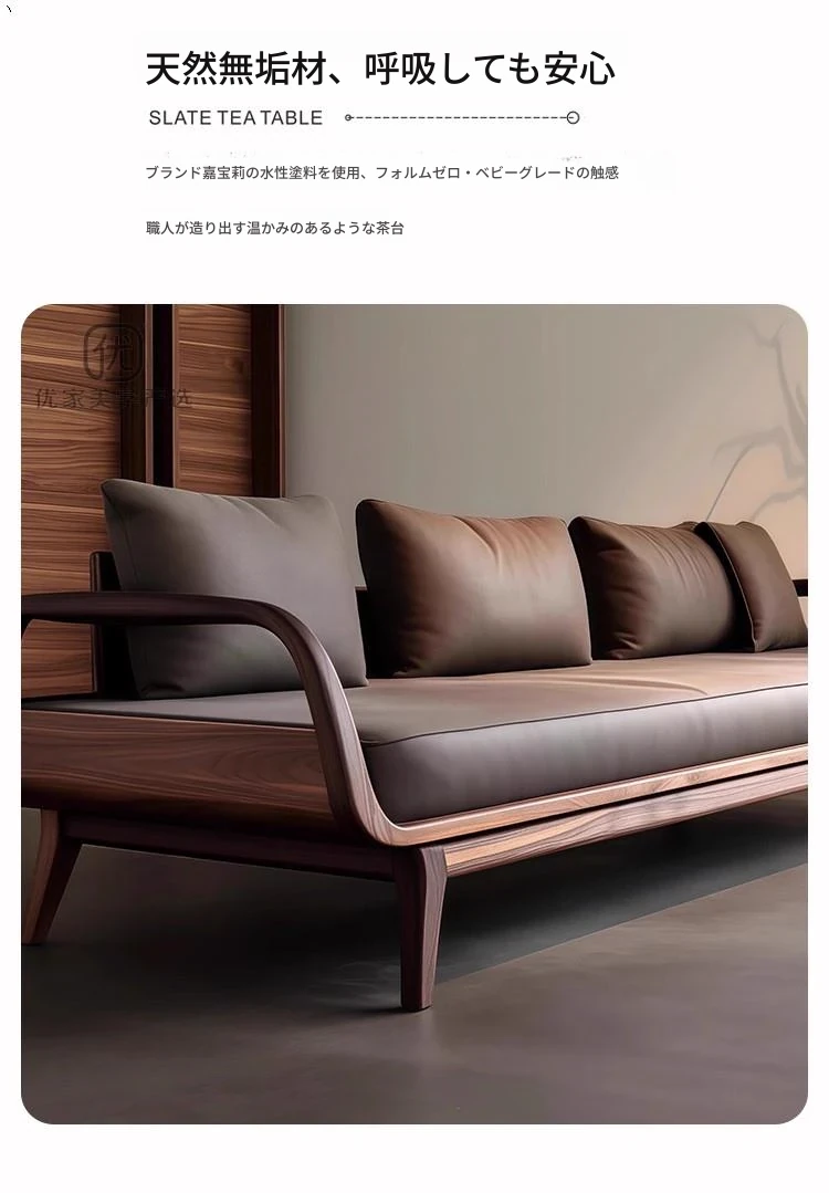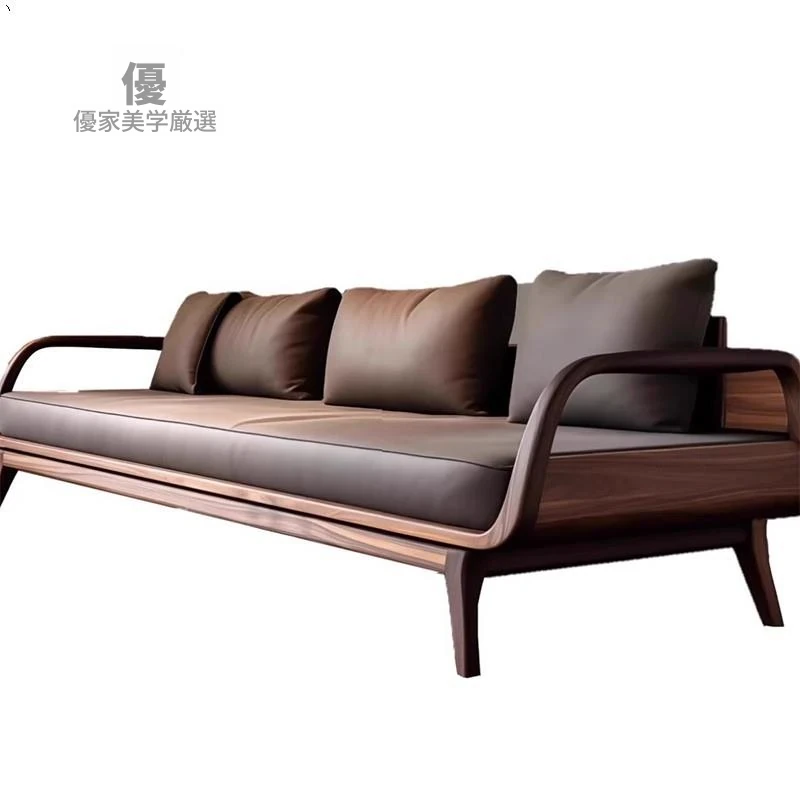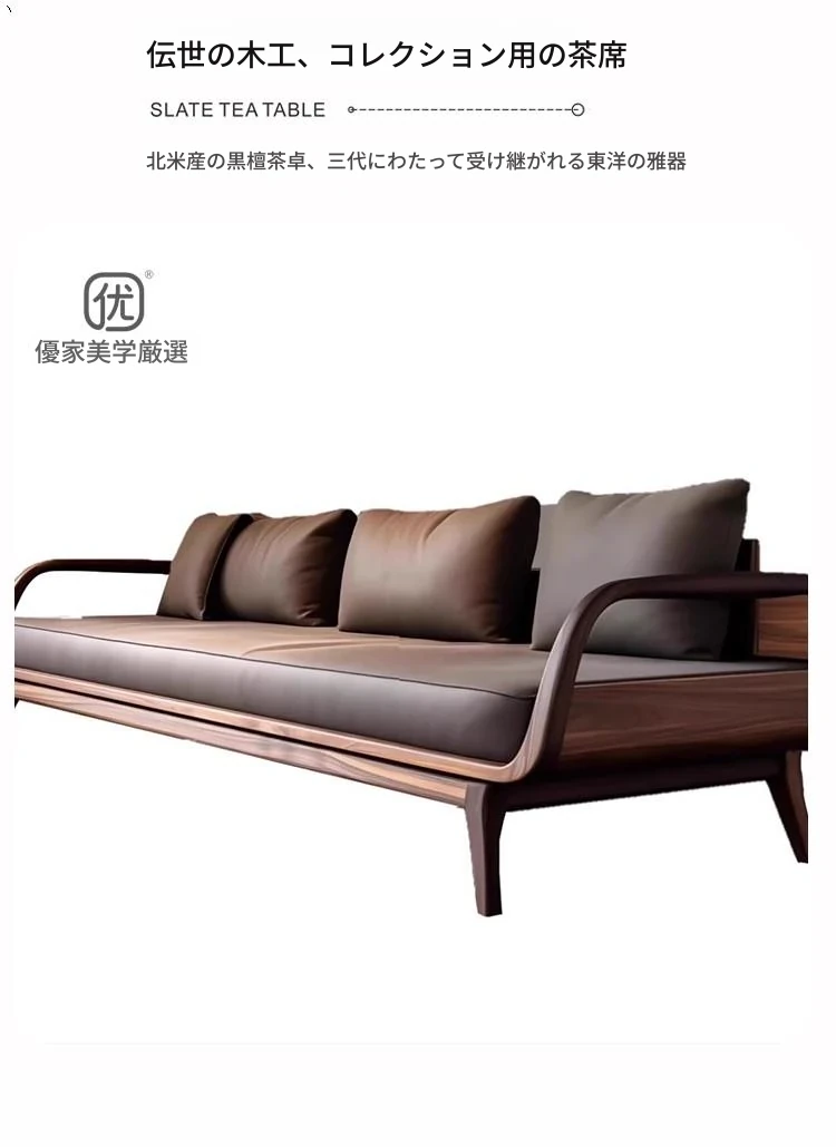 新中式北米産ブラックウォールナット無垢材ソファ 2025年新作 高級感あふれるモダンなリビング用ストレートソファ