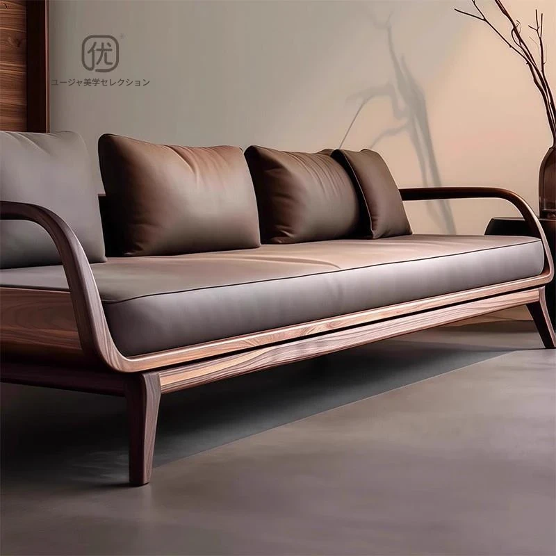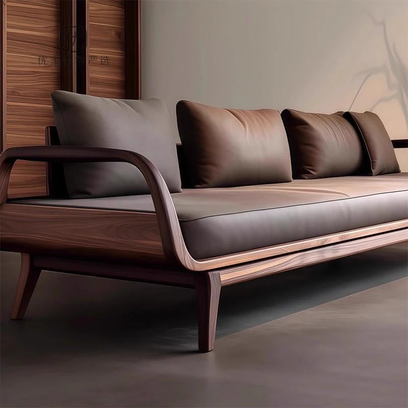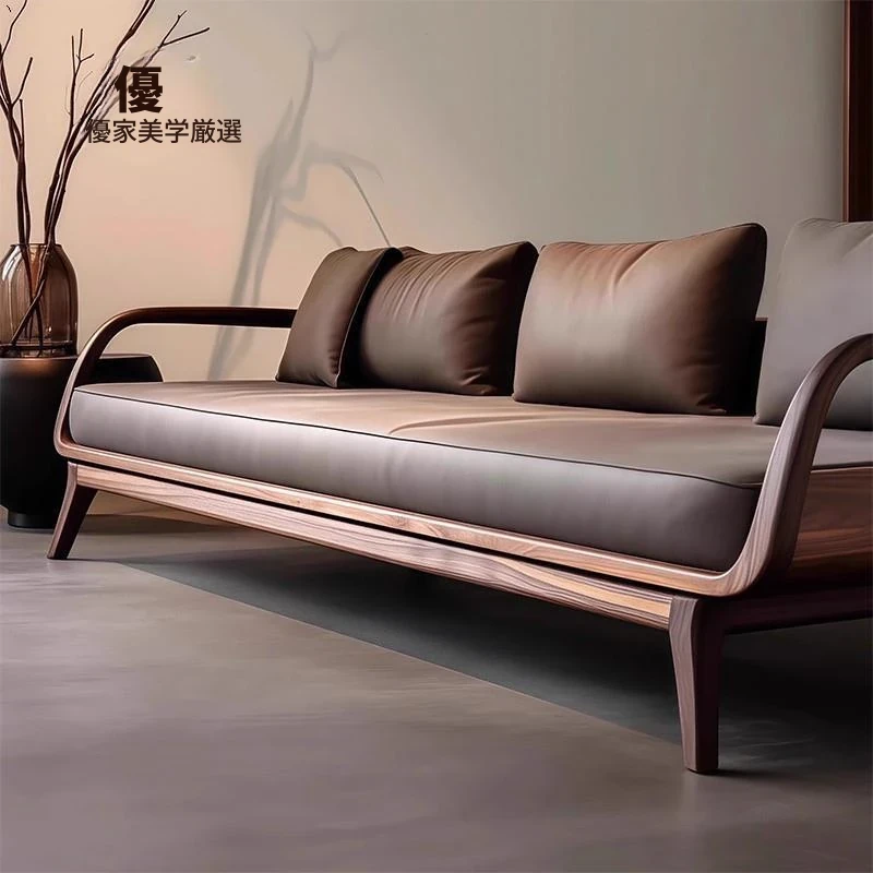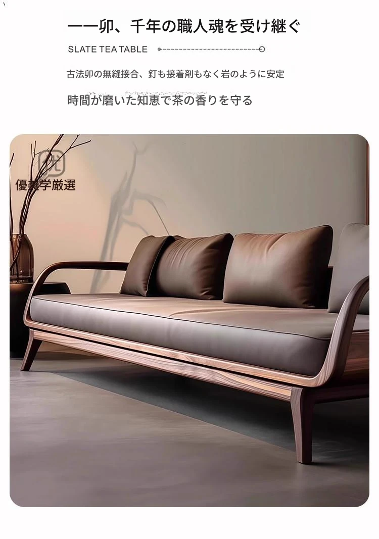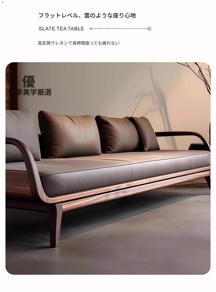新中式北米産ブラックウォールナット無垢材ソファ 2025年新作 高級感あふれるモダンなリビング用ストレートソファ