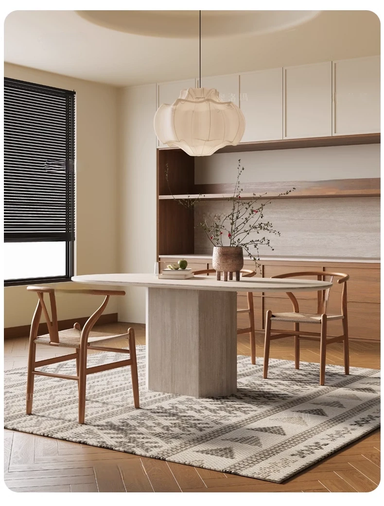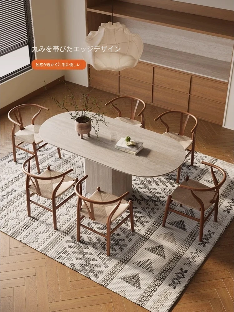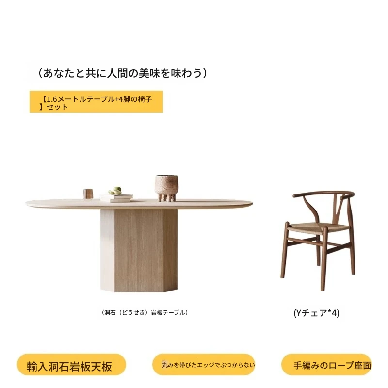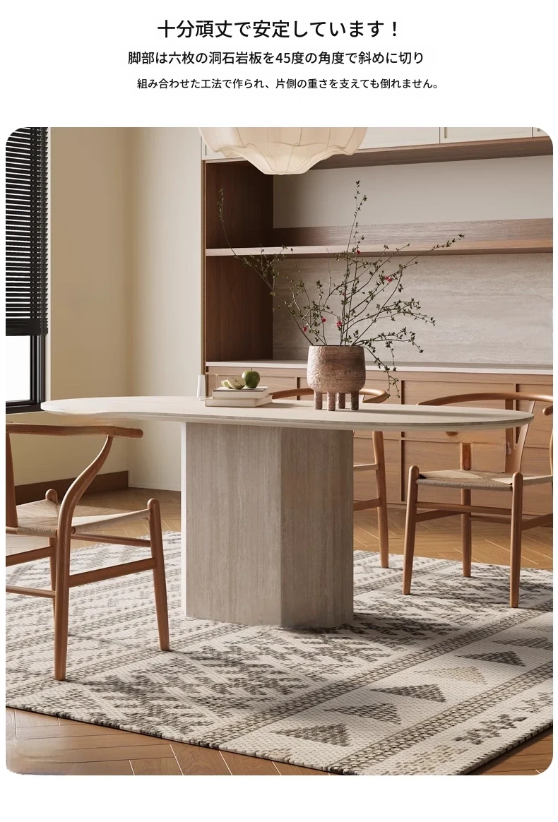 2025年新作!レトロな雰囲気のドームストーン製オーバル&レクタングルテーブル。デザイナーによるスタイリッシュな岩板ダイニングテーブルとチェアのセットで、どんなインテリアにもぴったり!